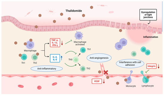 132. Wang, L.; Wang, S.; Xue, A.; Shi, J.; Zheng, C.; Huang, Y. Thalidomide Inhibits Angiogenesis via Downregulation of VEGF and Angiopoietin-2 in Crohn’s Disease. Inflammation 2021, 44, 795–807. [Google Scholar] [CrossRef]