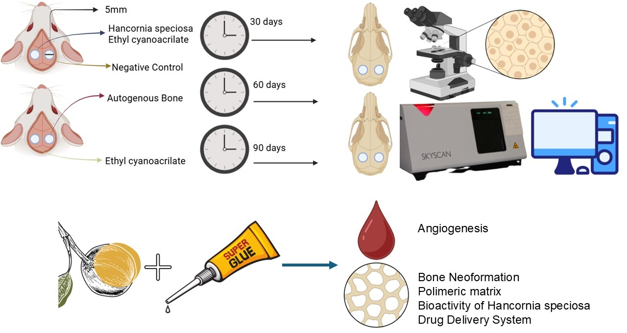 Development of a Drug Delivery System Using a Compound Based on Ethyl Cyanoacrylate and Hancornia speciosa (Gomes) in a Rat Calvaria Model