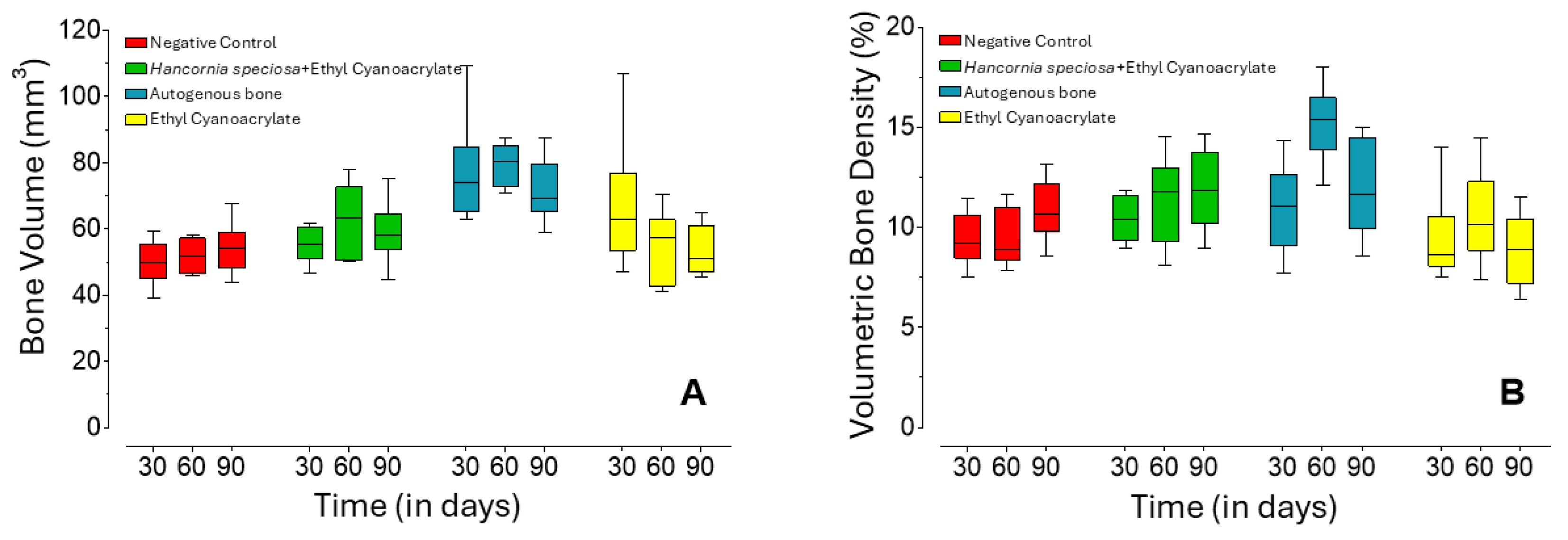 - Felipetti, F.A.; Bereta, R.M.; Piedade, S.M.S.; Novaes, P.D. Oral administrations of Hancornia speciosa Gomes latex do not increase bone neoformation. Rev. Bras. Ortop. 2019, 54, 692–696. [Google Scholar]