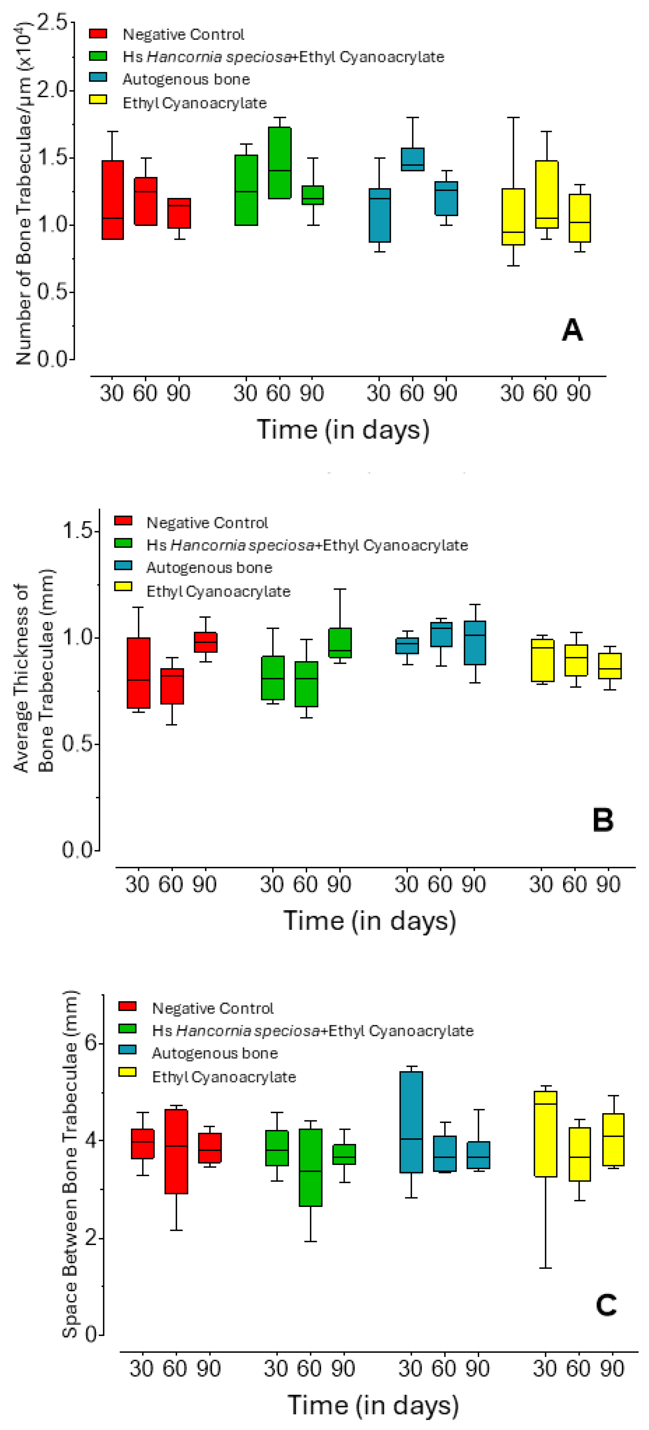 | Trabecular Separation (mm) | Hs+ECA | 3.80 a A (3.62–4.03) | 3.38 a A (2.98–4.04) | 3.65 a A (3.64–3.81) |