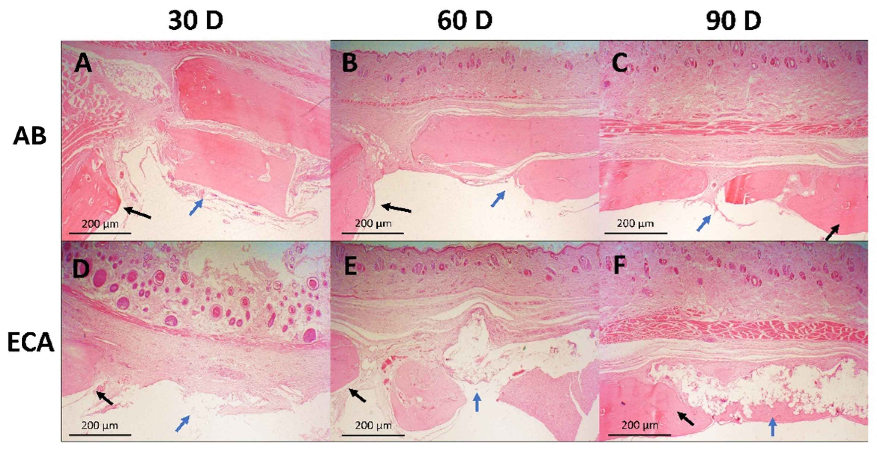 | Bone Volume (mm3) | Hs+ECA | 55.6 b A (53.0–59.3) | 63.2 b A (53.7–69.0) | 57.2 a A (56.7–61.2) |