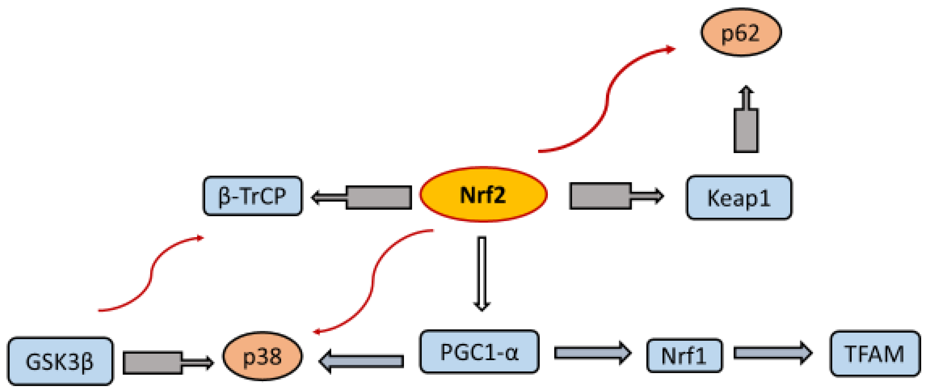 - Hayes, J.D. ∙ Dinkova-Kostova, A.T. The Nrf2 regulatory network provides an interface between redox and intermediary metabolism. Trends Biochem. Sci. 2014, 39, 199–218. [Google Scholar] [CrossRef] [PubMed]