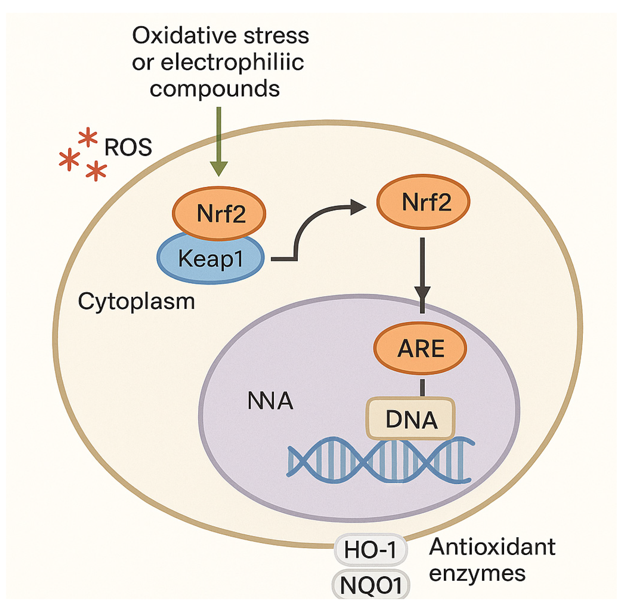 - Ngo, V.; Duennwald, M.L. Nrf2 and Oxidative Stress: A General Overview of Mechanisms and Implications in Human Disease. Antioxidants 2022, 11, 2345. [Google Scholar] [CrossRef] [PubMed]