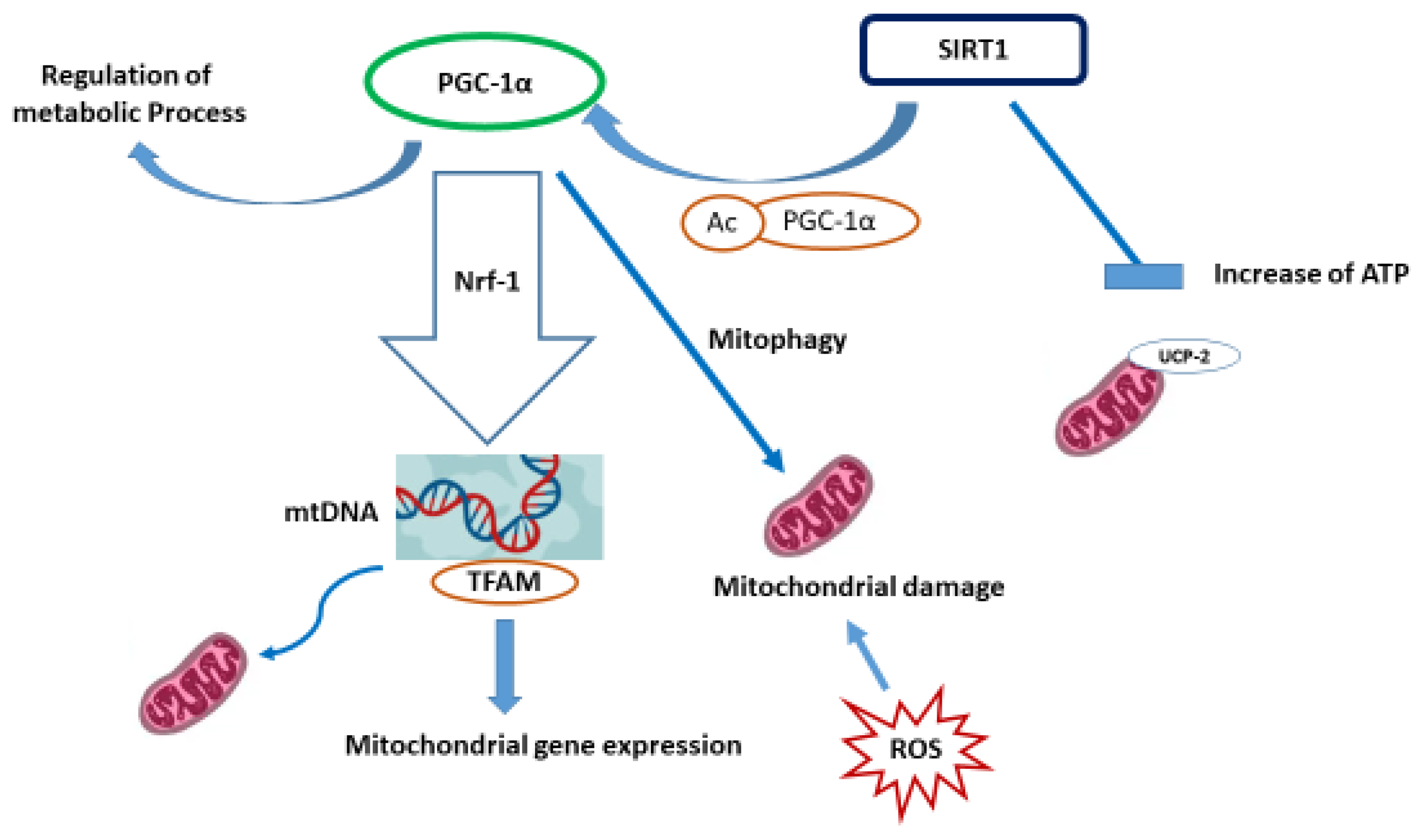 - Gureev, A.P.; Shaforostova, E.A.; Popov, V.N. Regulation of Mitochondrial Biogenesis as a Way for Active Longevity: Interaction Between the Nrf2 and PGC-1α Signaling Pathways. Front. Genet. 2019, 10, 435. [Google Scholar] [CrossRef]