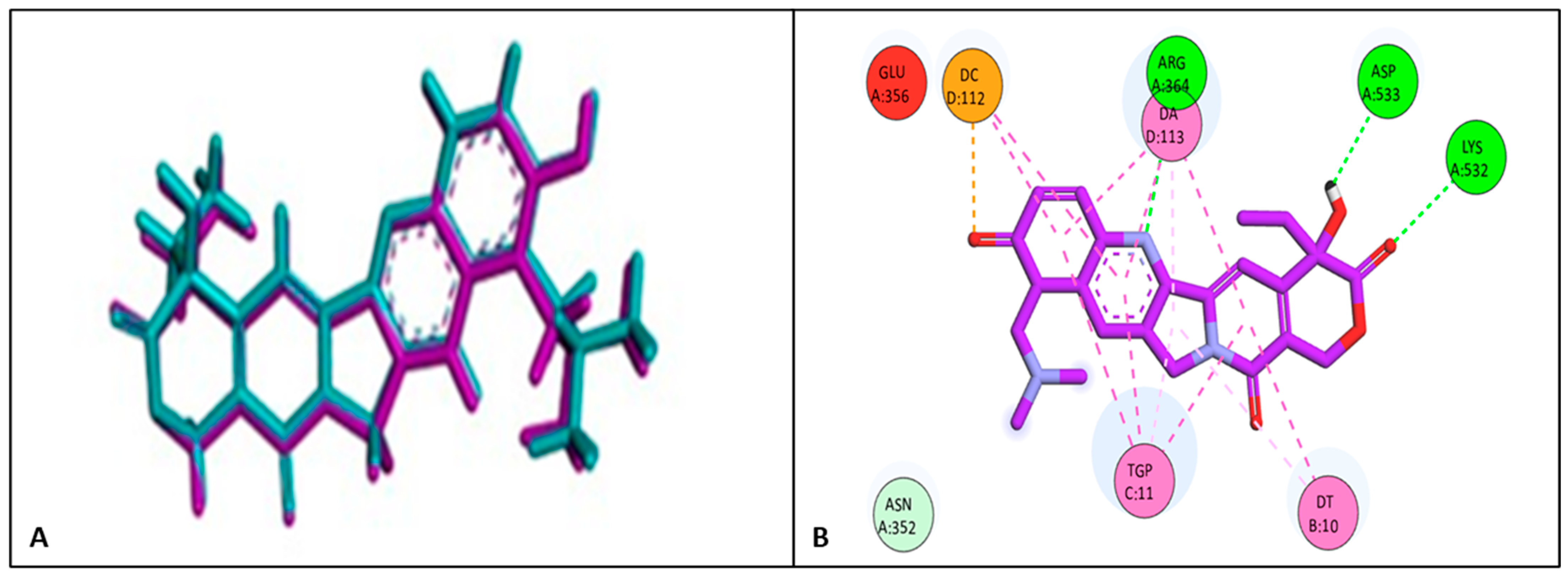 | Topotecan | Topo I | −10.26 | LYS 532 | H-bond |