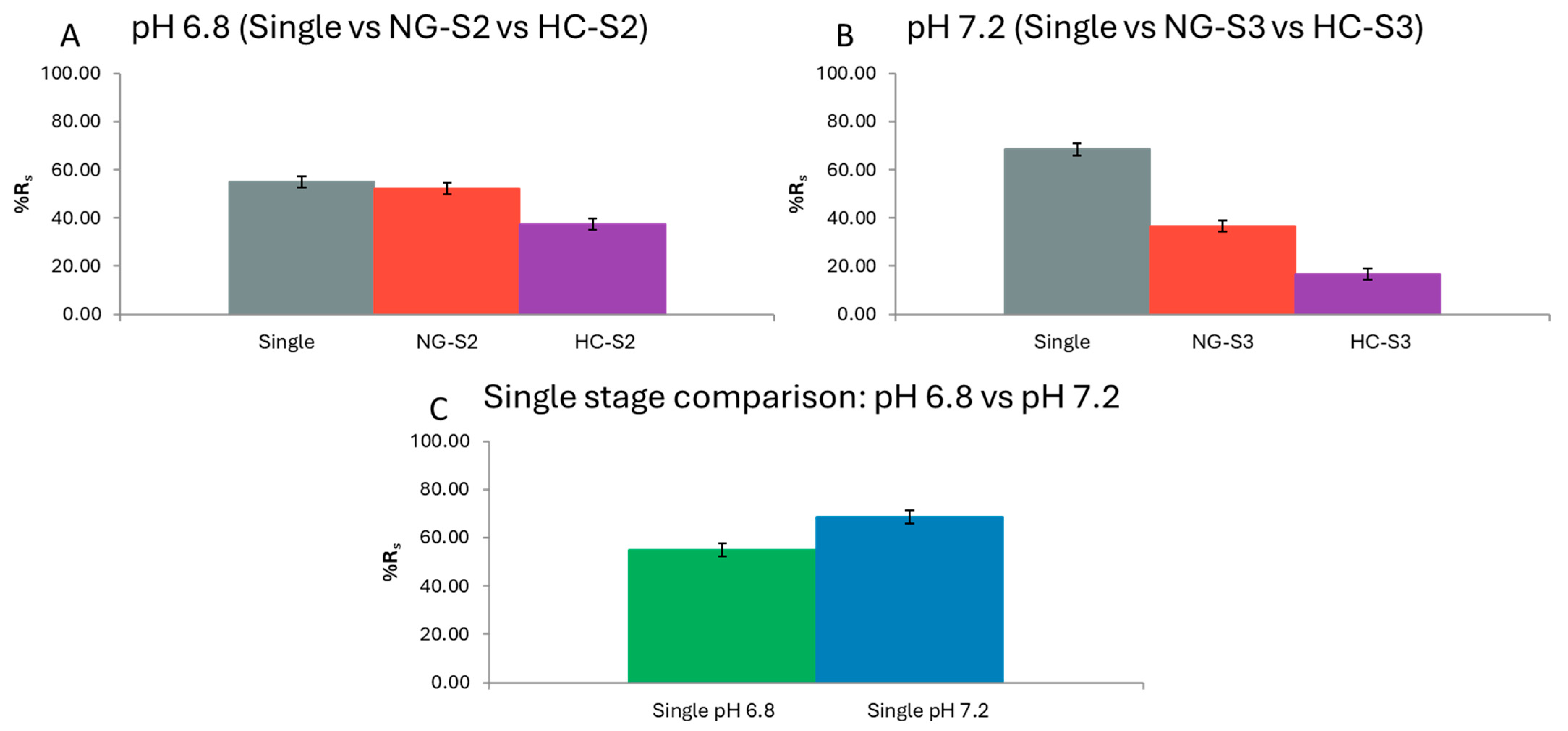 2.5.2. pH 7.2 Test: Single vs. S3 of NG and HC