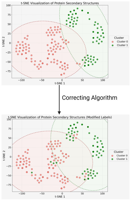 While this initial clustering provides a strong, data-driven foundation, we further enhance the biological relevance and logical consistency of the labels through a rule-based refinement process. This process involves two “Correcting Algorithms,” which integrate established biological ground truths into the unsupervised learning output, as illustrated in Figure 3. The details are as follows: