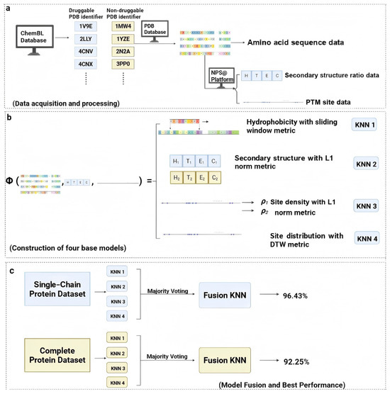 - Halder, A.; Samantaray, S.; Barbade, S.; Gupta, A.; Srivastava, S. DrugProtAI: A machine learning–driven approach for predicting protein druggability through feature engineering and robust partition-based ensemble methods. Brief. Bioinform. 2025, 26, bbaf330. [Google Scholar] [CrossRef] [PubMed]