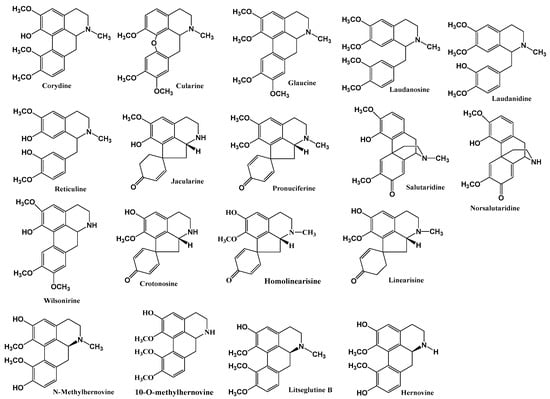 NTDs represent a significant health burden in large parts of the world. Some Croton species are notable for their production of alkaloids, which are biogenetically related to benzylisoquinolines, such as morphinandienones, apomorphine, and tetrahydroprotoberberine alkaloids [,]. Croton linearis Jacq is an evergreen shrub that grows in Caribbean regions (Cuba, Jamaica), the Bahamas, and Florida []. In the Bahamas, the crushed leaves have a small effect on bronchial and head colds when inhaled, owing to the release of fragrant oils. Tea eases symptoms of colds, flu, and influenza. Also, the decoction of leaves is used by oral route or in baths to relieve pains related to the menstrual period, after birth, and rheumatism []. Asprey and Thornton reported that it is usually used by Jamaican peasants as a hair wash, as in Browne’s day, it is still used in baths for fever and colds, for the treatment of which a tea made with the plant may also be taken [].