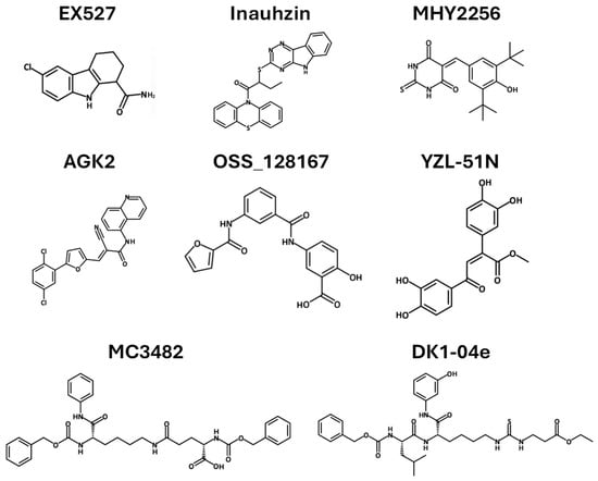 Chemical structure of sirtuin inhibitors. Structures drawn using Mavin Chemical Sketch.