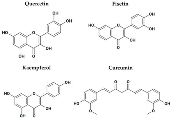 Quercetin is a polyphenol that activates SIRT1 and SIRT6 (Figure 8). Quercetin has anticancer properties in hepatoblastoma cells by inducing SIRT6-mediated deacetylation of H3K9, which ultimately downregulates Wnt/β-catenin signaling. This suppresses proliferation and invasion while enhancing apoptosis, both in vitro and in vivo []. Quercetin indirectly activates SIRT1 by elevating NAD+ and AMPK activation, which increases autophagy and apoptosis, modulates inflammation and oxidative stress, and enhances genome stability []. Quercetin and its derivative KPMF-8 also directly activate SIRT1, which increases its affinity for substrates such as p53. KPMF-8 increased SIRT1 binding affinity for the acetylated p53 peptide by ~8-fold, whereas resveratrol only produced a 1.4-fold increase []. Fisetin is another polyphenol that is found in grapes, apples, cucumbers, strawberries, onions, and persimmons (Figure 8). It activates SIRT1 and has anticancer, antioxidant, and anti-inflammatory effects. Fisetin counteracts oxidative stress and modulates immune responses through activation of the AMPK-SIRT1 and Nrf2 signaling pathways []. Fisetin suppressed pancreatic cancer progression by targeting the PI3K/AKT/mTOR signaling cascade, thereby inhibiting cell proliferation, migration, and invasion []. Kaempferol, a natural flavonoid found widely in fruits, vegetables, and plants exhibit anticancer effects in diverse tumor types (Figure 8). Kaempferol activates SIRT1 and induces apoptosis, suppresses inflammation, and inhibits tumor cell migration. In lung and colorectal cancer, kaempferol suppresses cell proliferation and viability, and in HCC, it exhibits dose and time-dependent inhibition of cell viability []. Kaempferol enhances the efficacy of sorafenib chemotherapy when used in combination at subtoxic concentrations []. In addition, kaempferol combined with 5-fluorouracil was found to inhibit cell viability more effectively than either agent alone []. Curcumin is a polyphenol that activates SIRT1 and AMPK (Figure 8). In head and neck squamous cell carcinoma, curcumin has been shown to suppress cell migration and angiogenesis while promoting apoptosis through the activation of caspase-8 signaling pathways []. Curcumin directly binds to SIRT1, reducing its stability and consequently reducing its oncogenic activity. Curcumin induces ubiquitination-dependent proteasomal degradation of SIRT1 []. Collectively, the evidence indicates that these polyphenols are promising as anticancer therapies; however, further investigations are required to understand their mechanisms of action, optimize their bioavailability, and evaluate their efficacy in clinical settings.