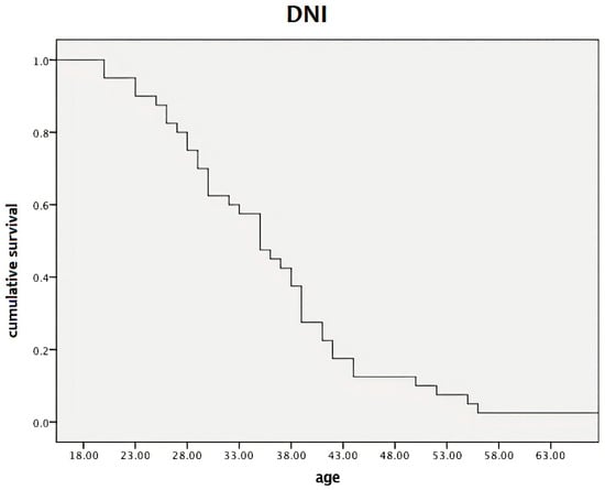 The mean DNI value was 69%, with a 95% CI of 52.7% to 10.8%. Figure 5 shows the Kaplan–Meier curve of DNI for both naive and switcher patients across the evaluated age range of 18–65 years.