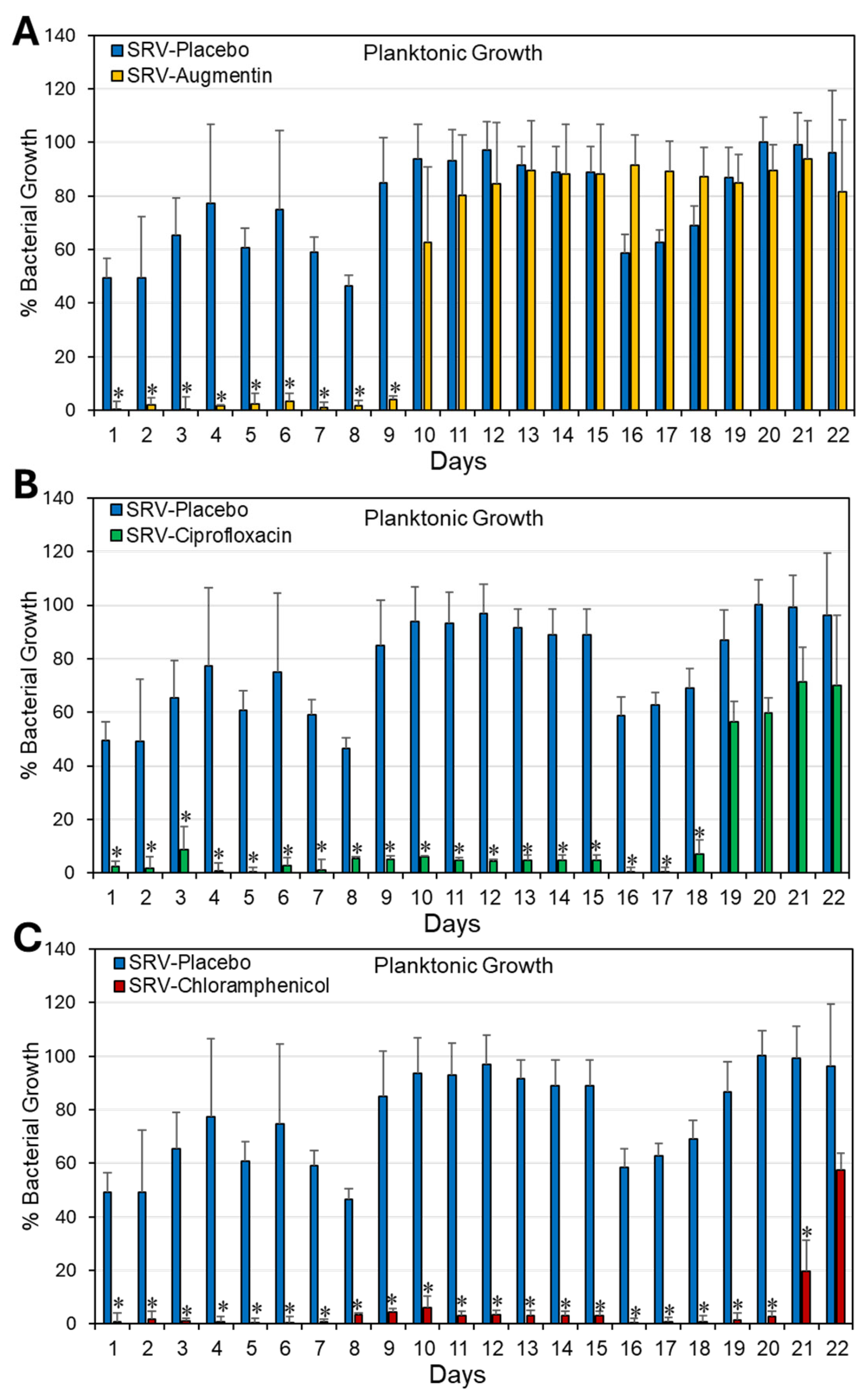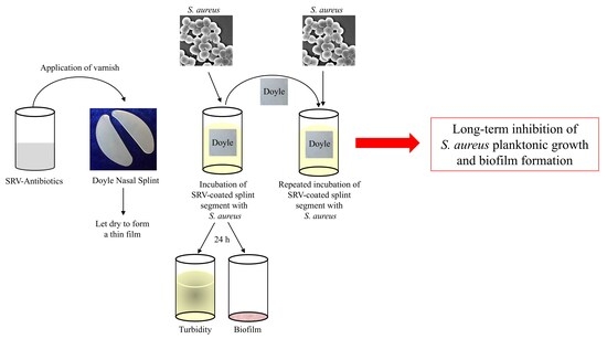 2.1. Coating Doyle Nasal Silicone Splints with SRV Containing Antibiotics Caused Long-Term Inhibition of S. aureus Planktonic Growth and Biofilm Formation