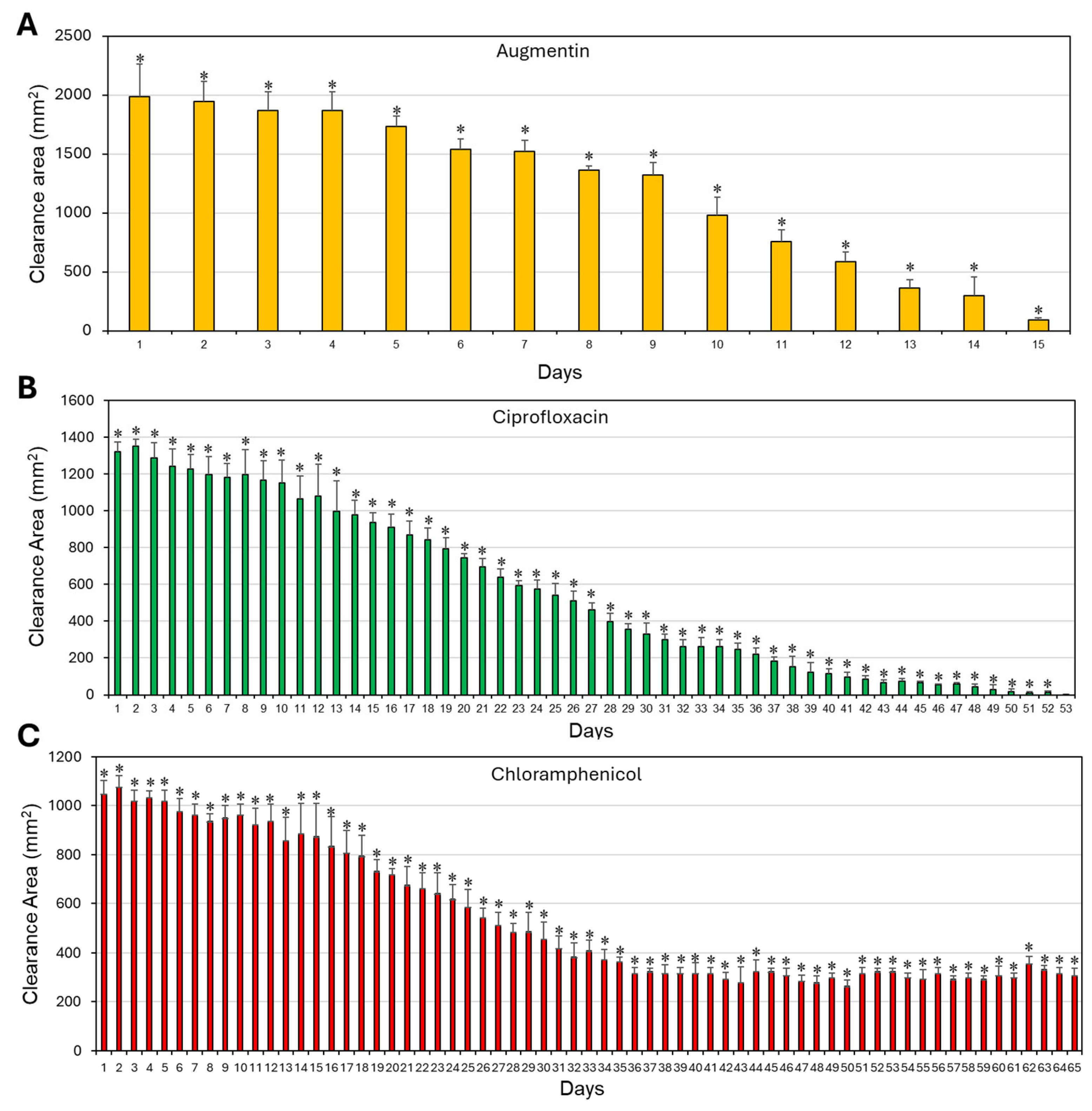| Active ingredient | None | 600 mg Augmentin | 600 mg Ciprofloxacin | 600 mg Chloramphenicol |
