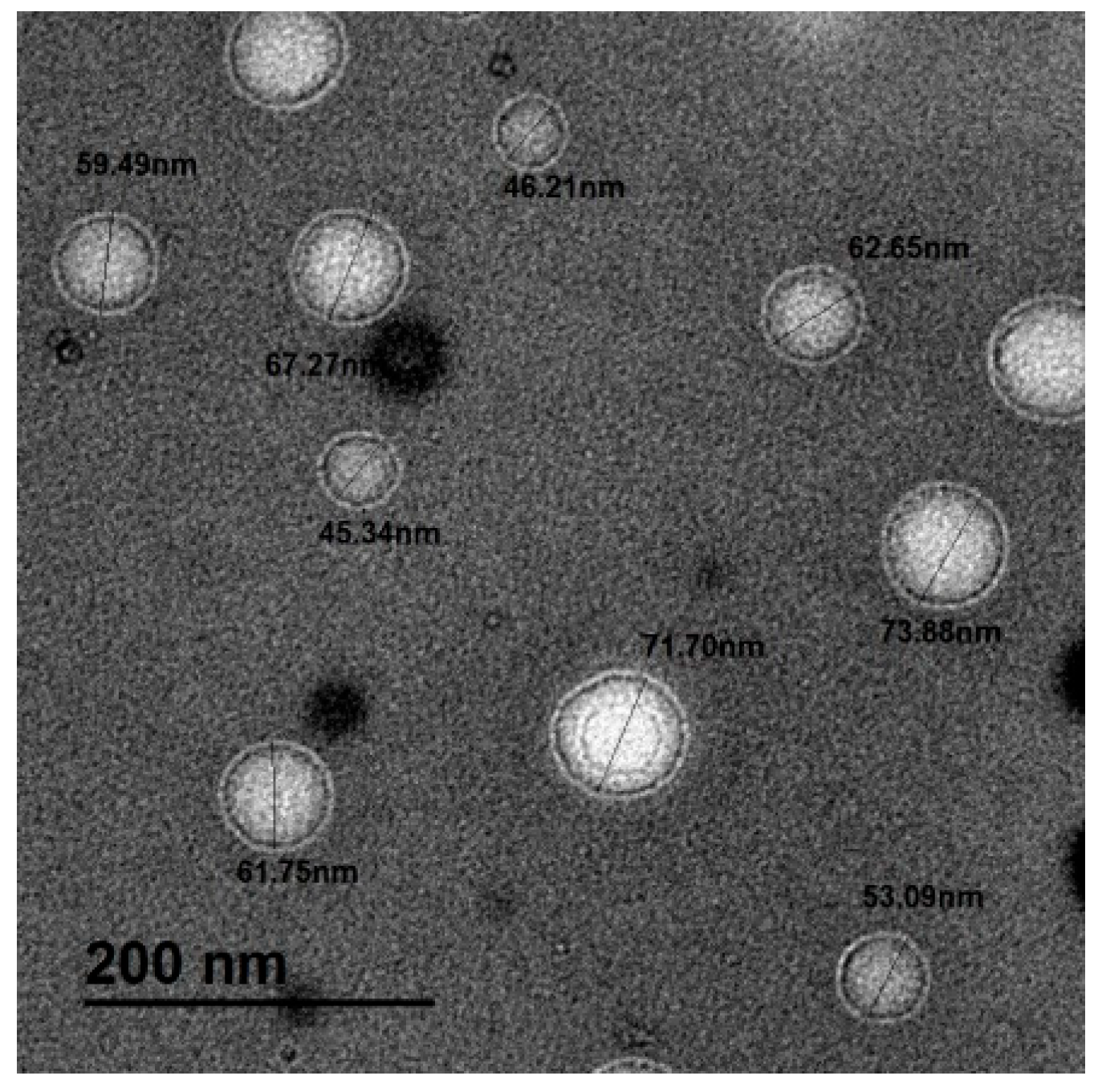 | Zeta potential (mV) | −53.68 ± 1.36 | −54.91 to −52.22 |