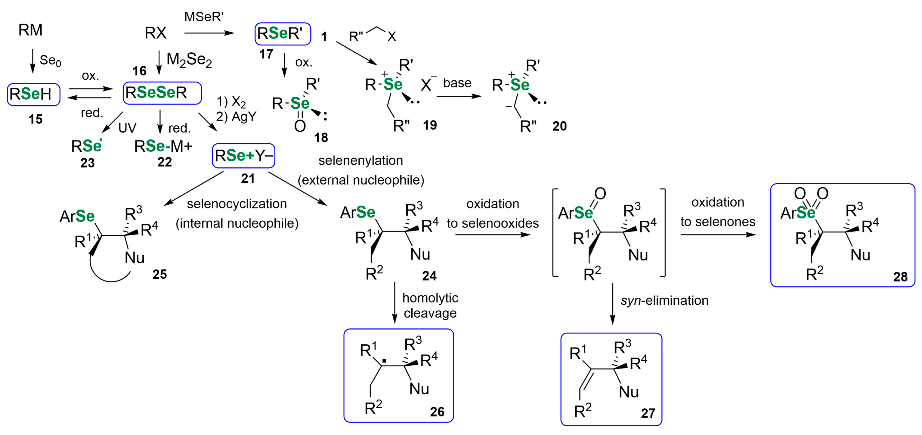 - Wirth, T. Organoselenium chemistry: A tool for asymmetric synthesis. Angew. Chem. Int. Ed. 2000, 39, 3740–3749. [Google Scholar] [CrossRef]