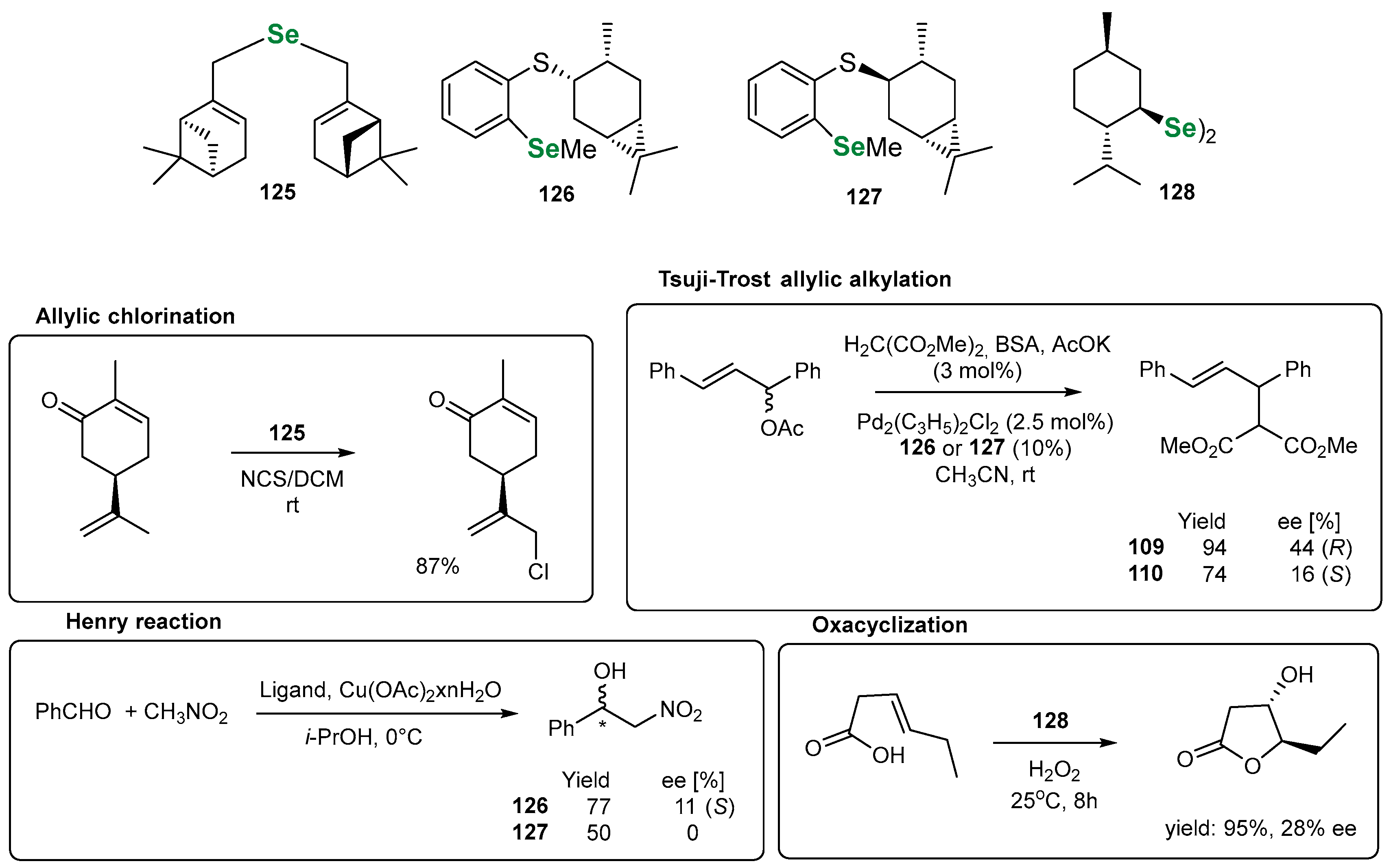 - Stadel, J.T.; Back, T.G. Asymmetric synthesis with organoselenium compounds—The past twelve years. Chem. Eur. J. 2024, 30, e202304074. [Google Scholar] [CrossRef] [PubMed]