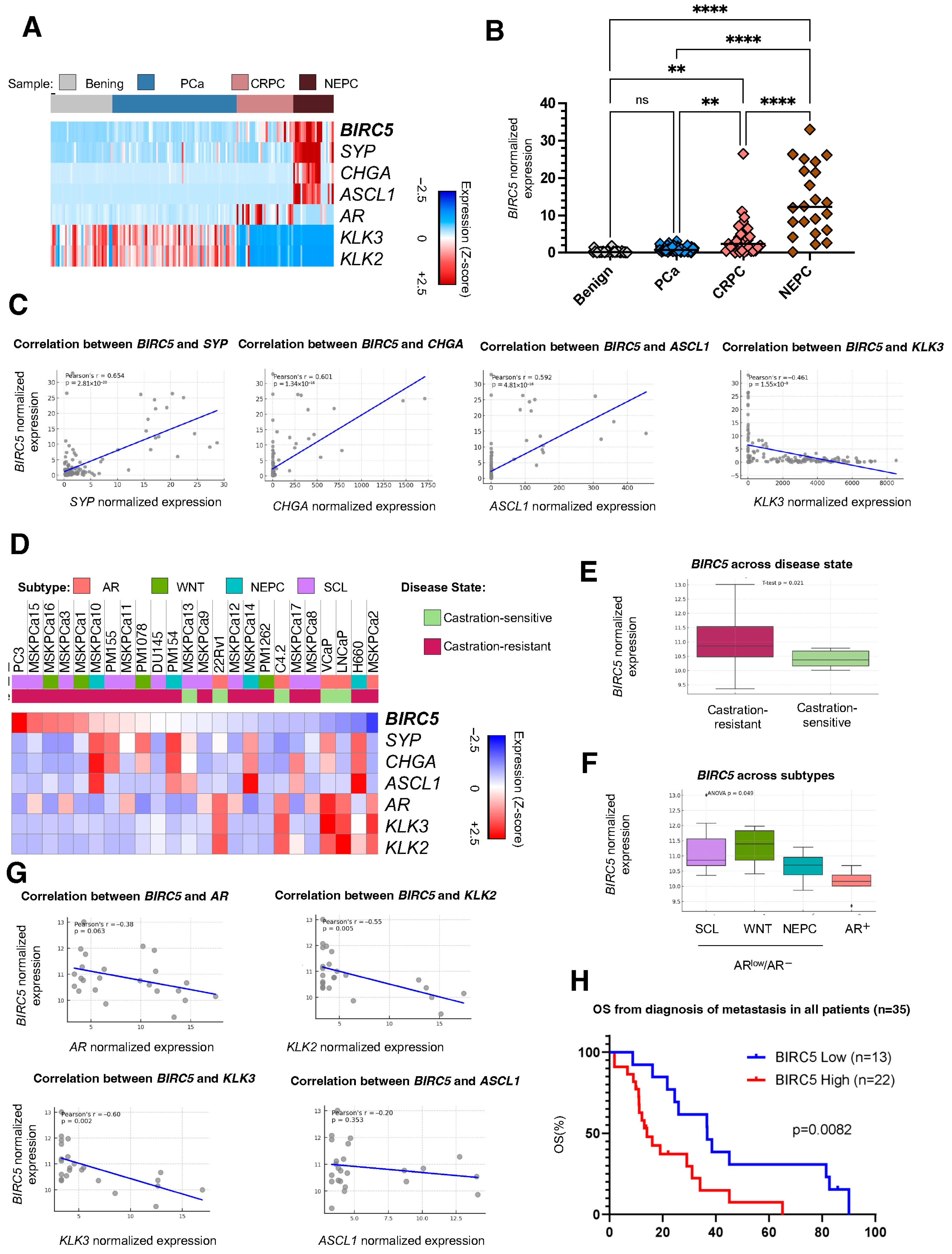 2.1. Survivin Is Overexpressed in mCRPC and NEPC and Correlates with Shorter OS