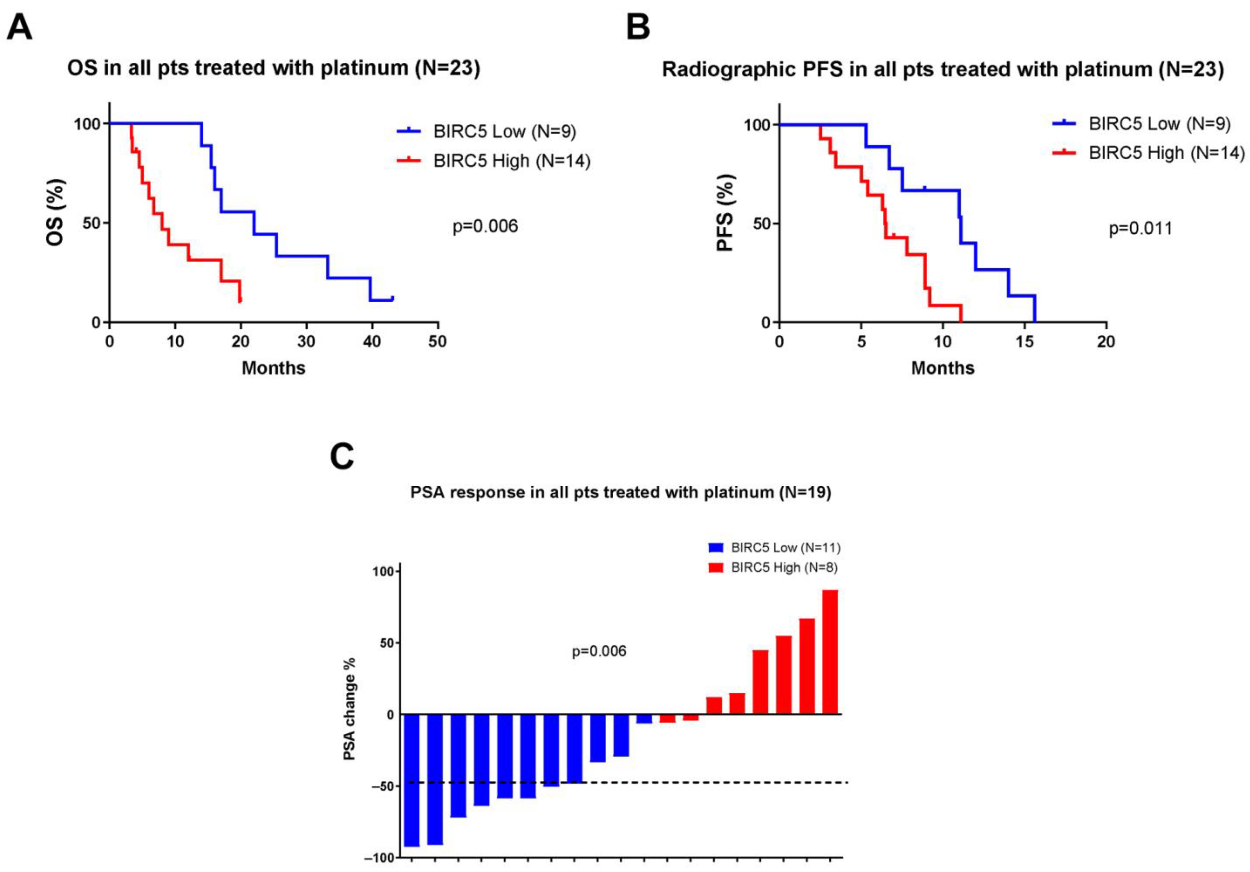 2.2. Survivin Overexpression Is Associated with Response and Outcomes in Platinum-Treated Patients