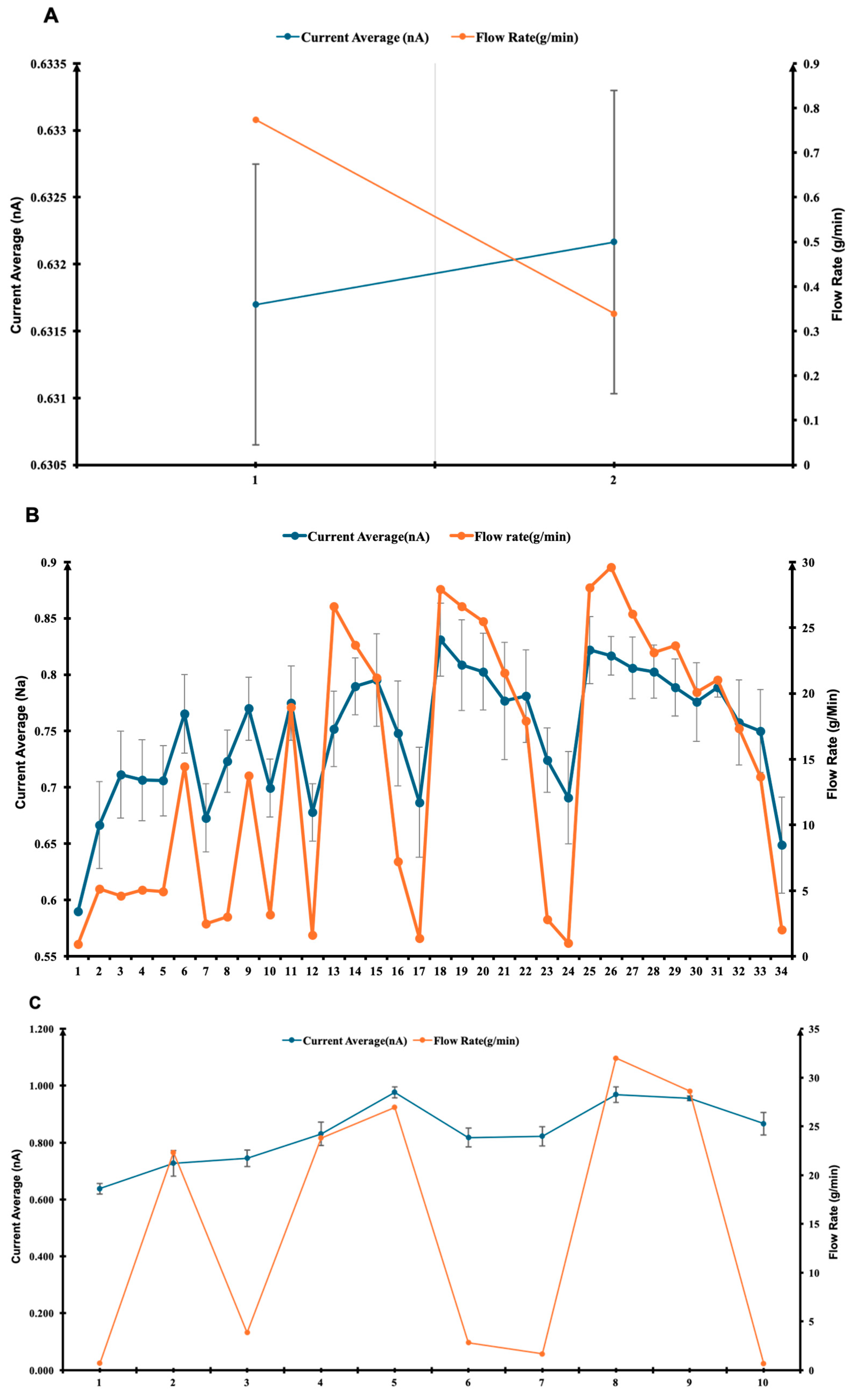 - Moreau, O.; Cabaleiro, J.M.; Paillat, T.; Artana, G.; Touchard, G. Influence of the Wall Shearing Stress on Flow Electrification. In Proceedings of the International Symposium on Non Thermal Plasmas Electrical Discharges and Dielectric Material, Reunion Island, France, 26–29 October 2016. [Google Scholar]
