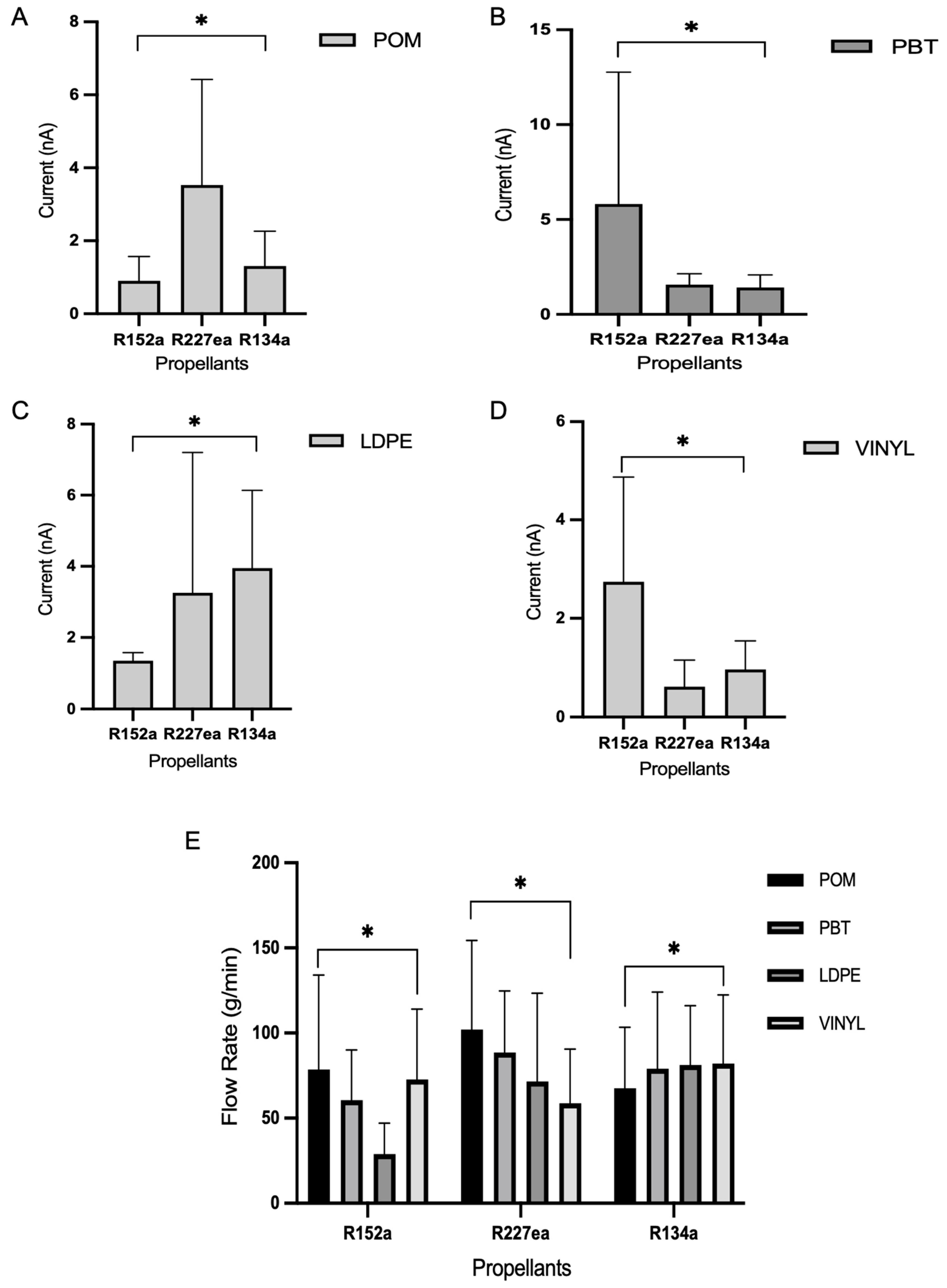 - Ahmad, H.; Rasekh, M.; Manivannan, N.; Balachandran, W. Liquid Resistivity of Pharmaceutical Propellants Using Novel Resistivity Cell. Sci. Rep. 2023, 13, 19122. [Google Scholar] [CrossRef]