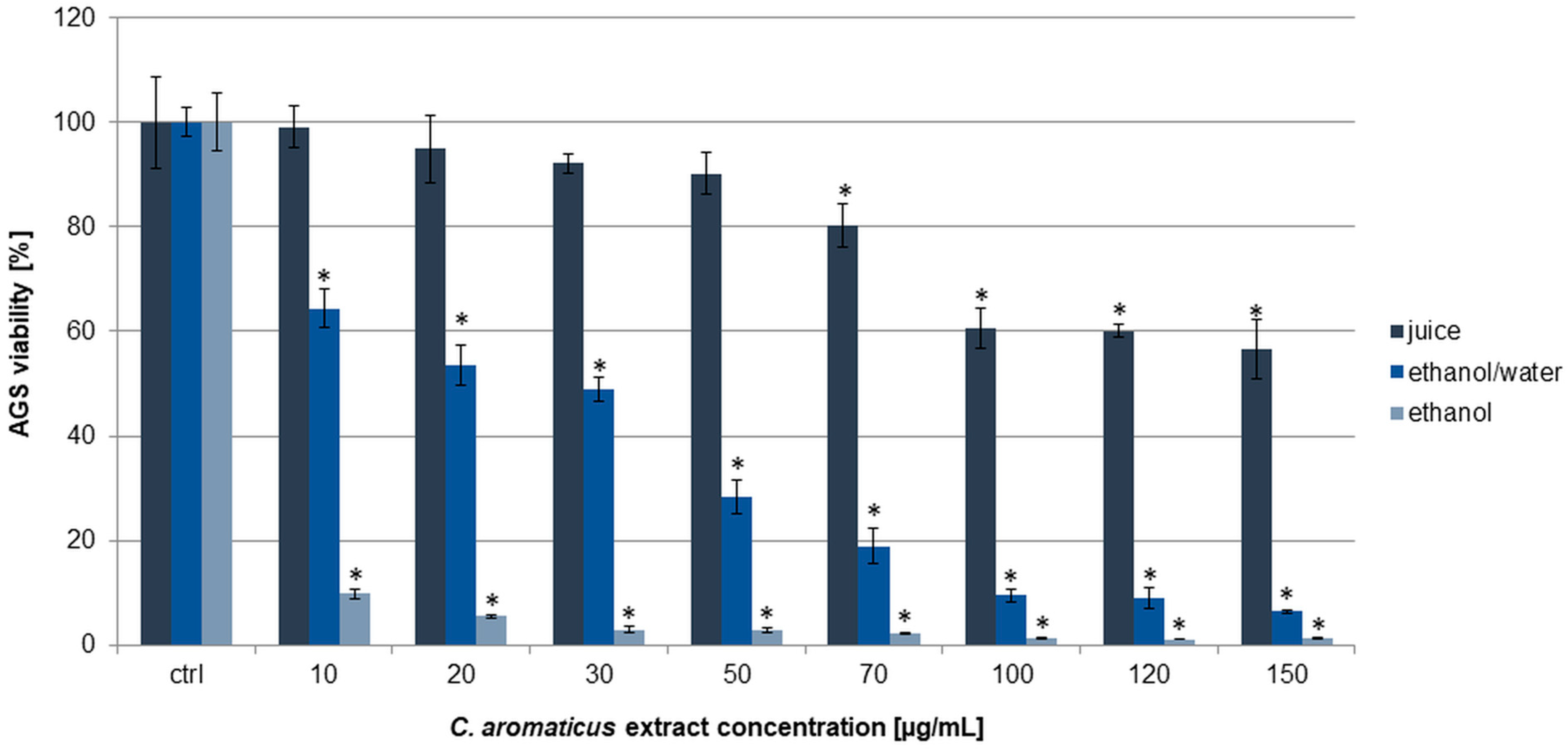 | C. aromaticus Ethanol Extract | C. aromaticus Ethanol/Water Extract | C. aromaticus Juice | Oxaliplatin | |