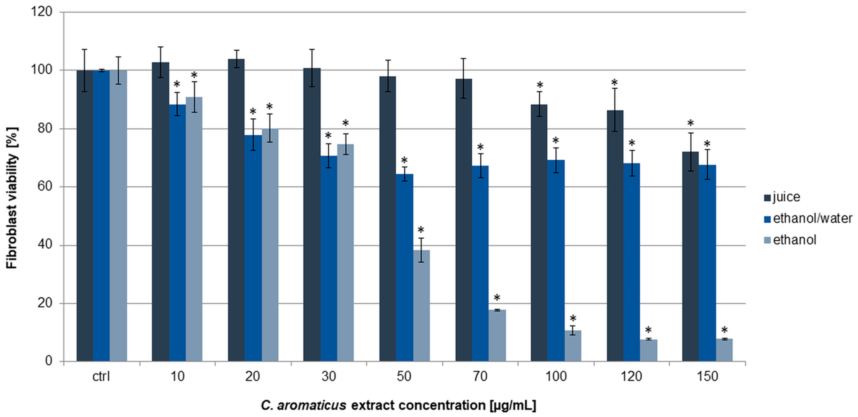 | C. aromaticus Ethanol Extract | C. aromaticus Ethanol/Water Extract | C. aromaticus Juice | Ascorbic Acid | |