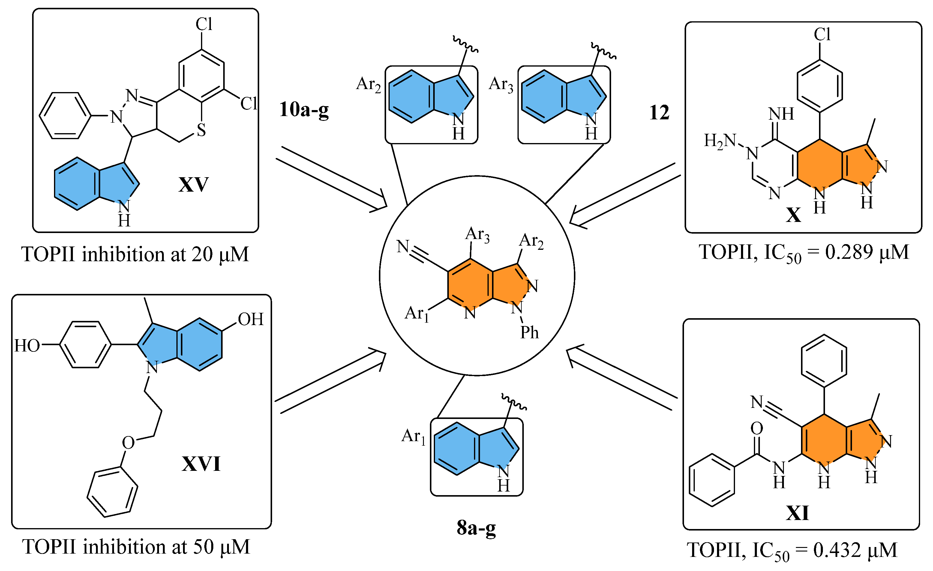 - Skok, Ž.; Zidar, N.; Kikelj, D.; Ilaš, J. Dual Inhibitors of Human DNA Topoisomerase II and Other Cancer-Related Targets. J. Med. Chem. 2019, 63, 884–904. [Google Scholar] [CrossRef] [PubMed]