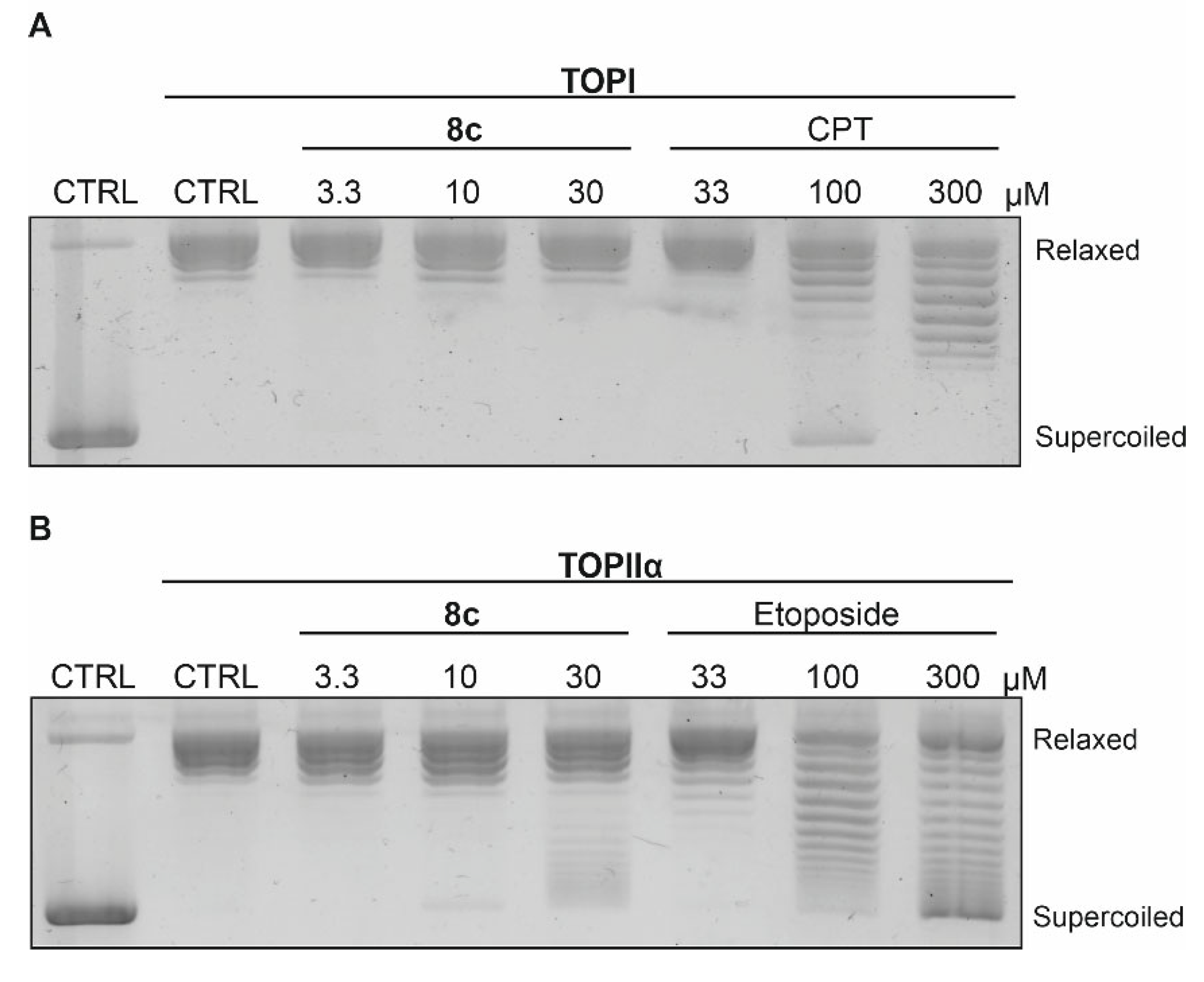 2.6. Topoisomerase Relaxation Assay