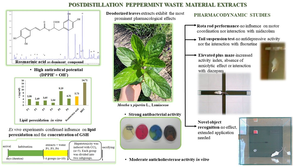Chemical, Biochemical, Antimicrobial, and Pharmacological Assessment of Postdistillation Waste Material Extracts of Mentha x piperita †
