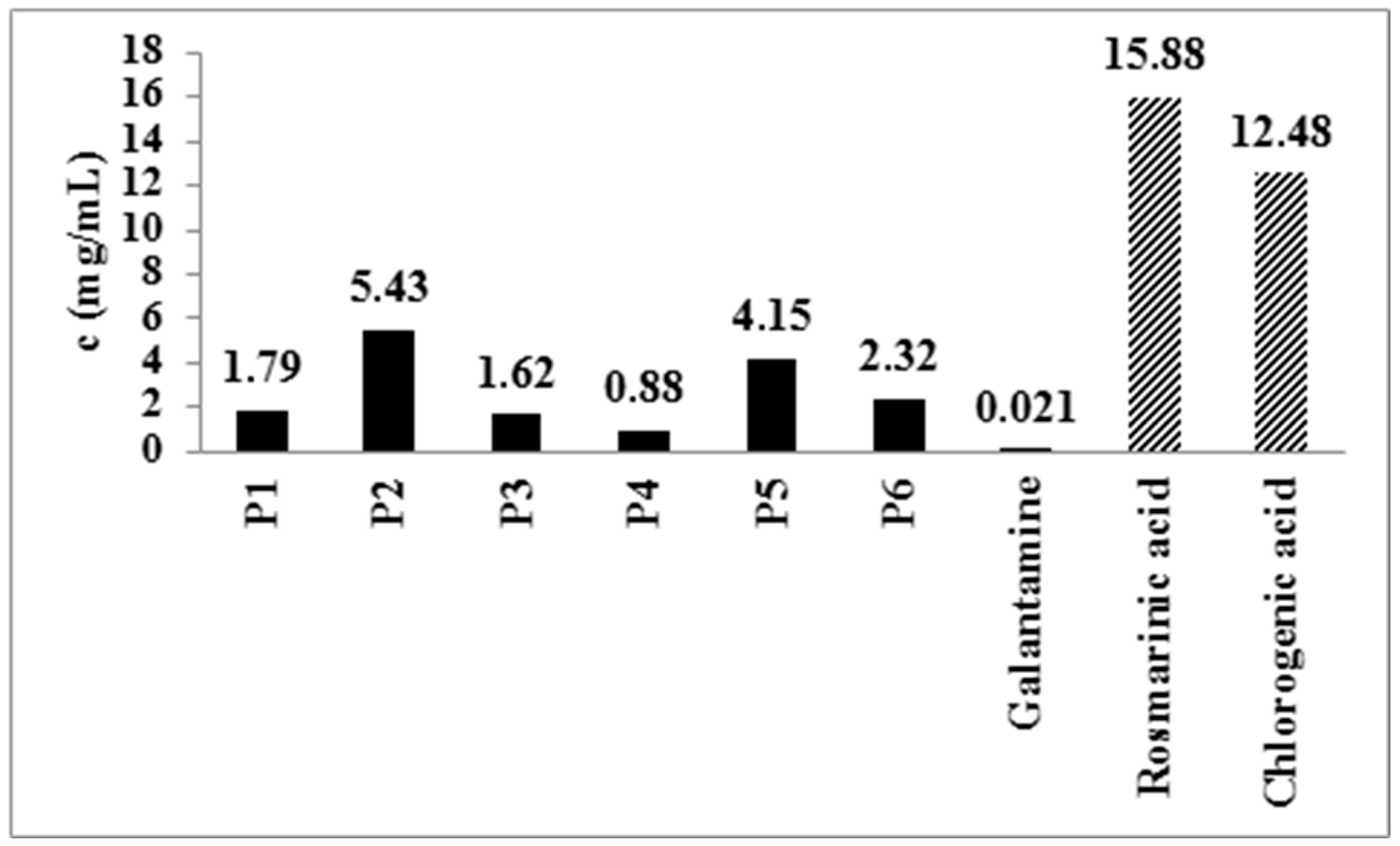 - Vladimir-Knežević, S.; Blažeković, B.; Kindl, M.; Vladić, J.; Lower-Nedza, A.D.; Brantner, A.H. Acetylcholinesterase inhibitory, antioxidant and phytochemical properties of selected medicinal plants of the Lamiaceae family. Molecules 2014, 19, 767–782. [Google Scholar] [CrossRef]