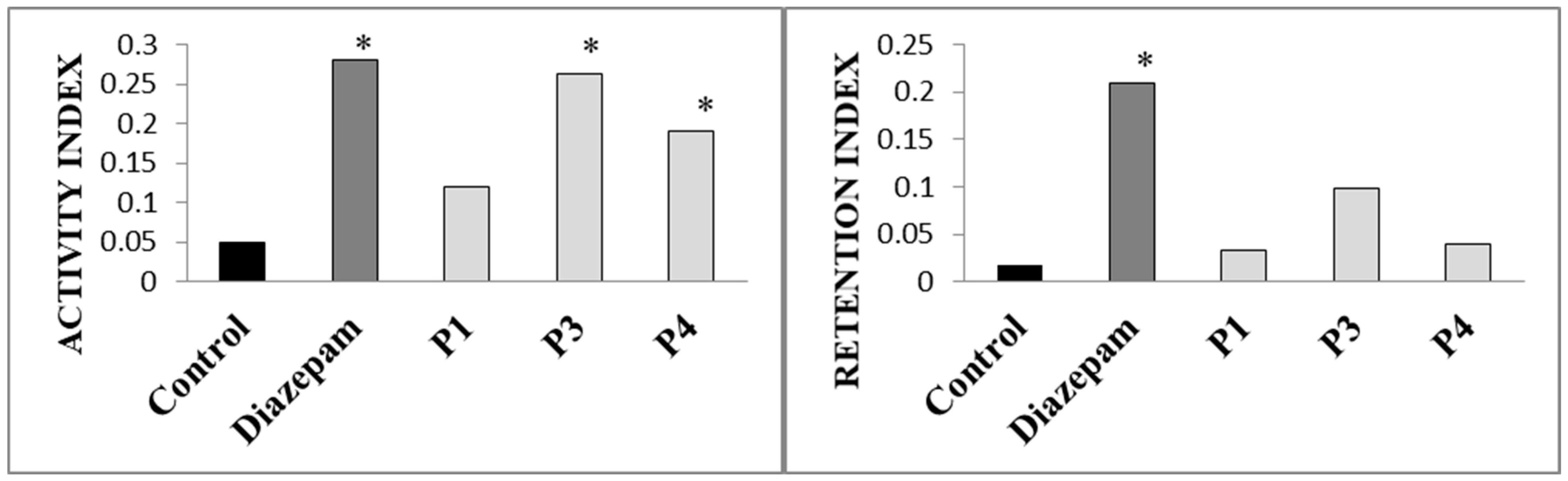 - Walf, A.; Frye, C. The use of elevated plus maze as an assay of anxiety-related behavior in rodents. Nat. Protoc. 2007, 2, 322–328. [Google Scholar] [CrossRef]