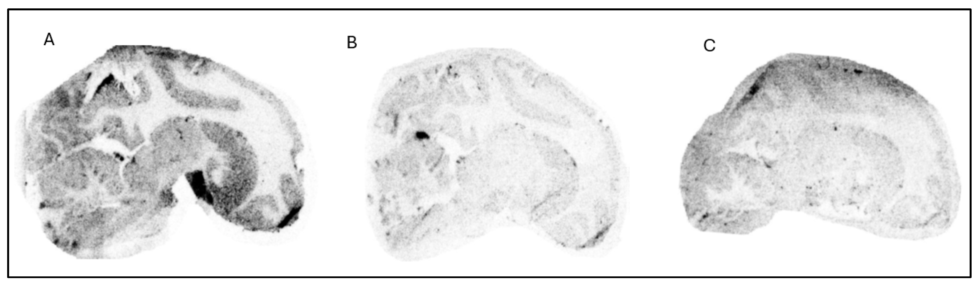 Whole brain hemispheres were sectioned into horizontal slices with a thickness of 100 µm using a Leica cryomacrocut system. The autoradiographic procedures followed the same protocols established in previous studies conducted in our laboratory [