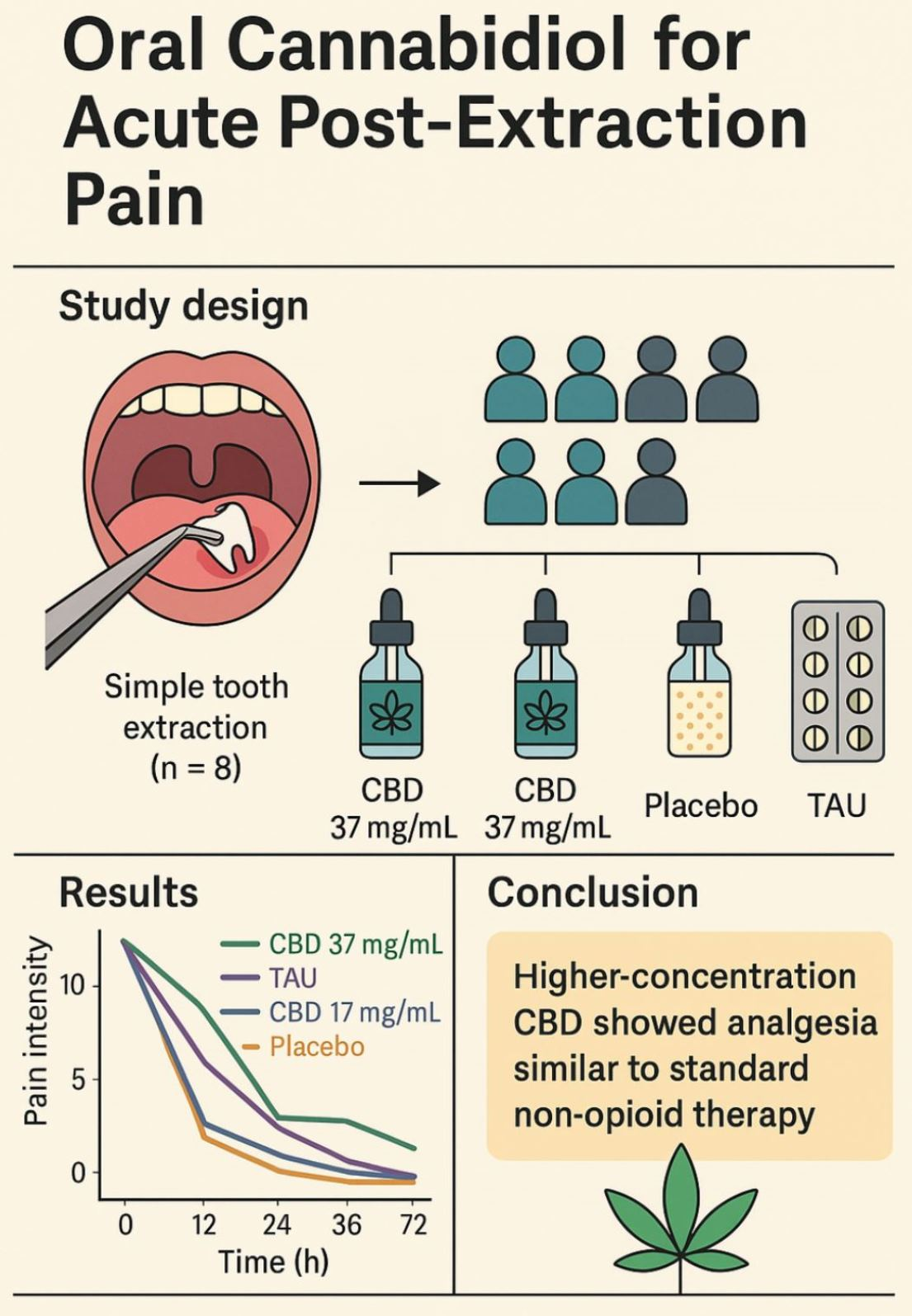 Clinical data on CBD’s use for acute dental pain is limited. A randomized placebo-controlled clinical trial (