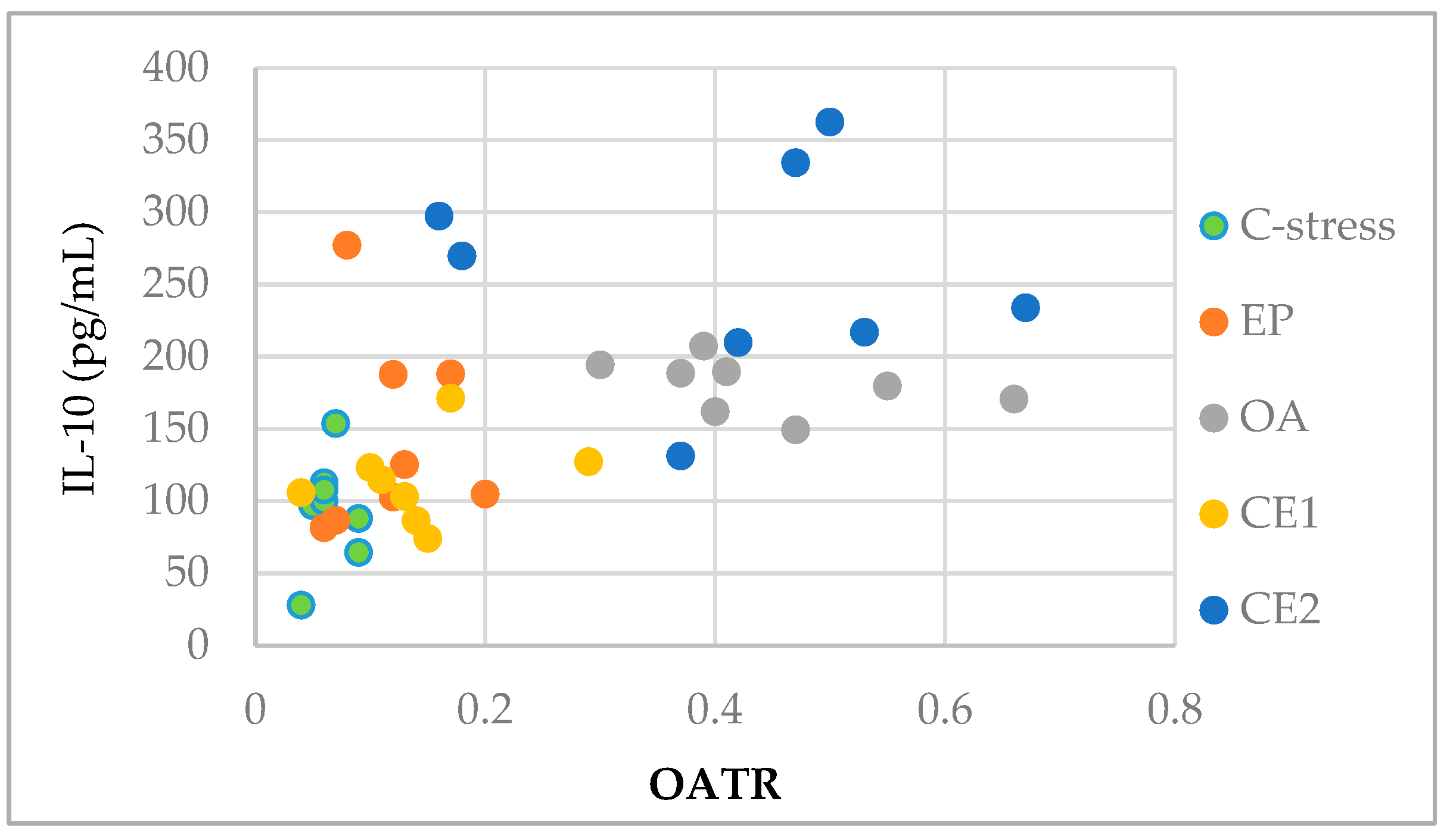 2.4. Correlations Between Behavioral and Immunological Parameters of EP and OA Extracts and Their Combinations
