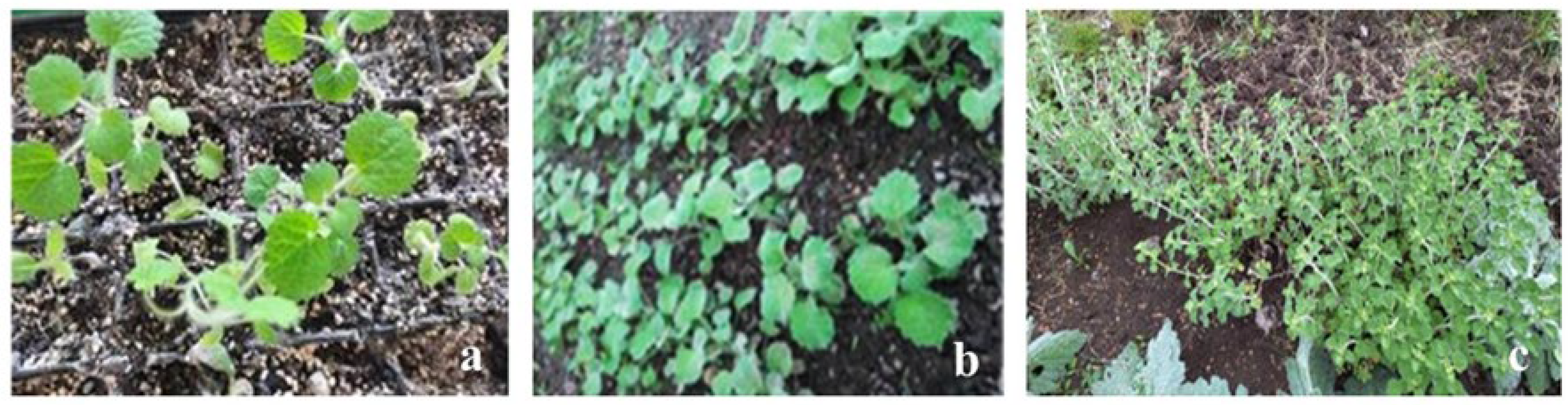 - Mehalaine, S.; Chenchouni, H. New insights for the production of medicinal plant materials: Ex vitro and in vitro propagation of valuable Lamiaceae species from northern Africa. Curr. Plant Biol. 2021, 27, 100216. [Google Scholar] [CrossRef]