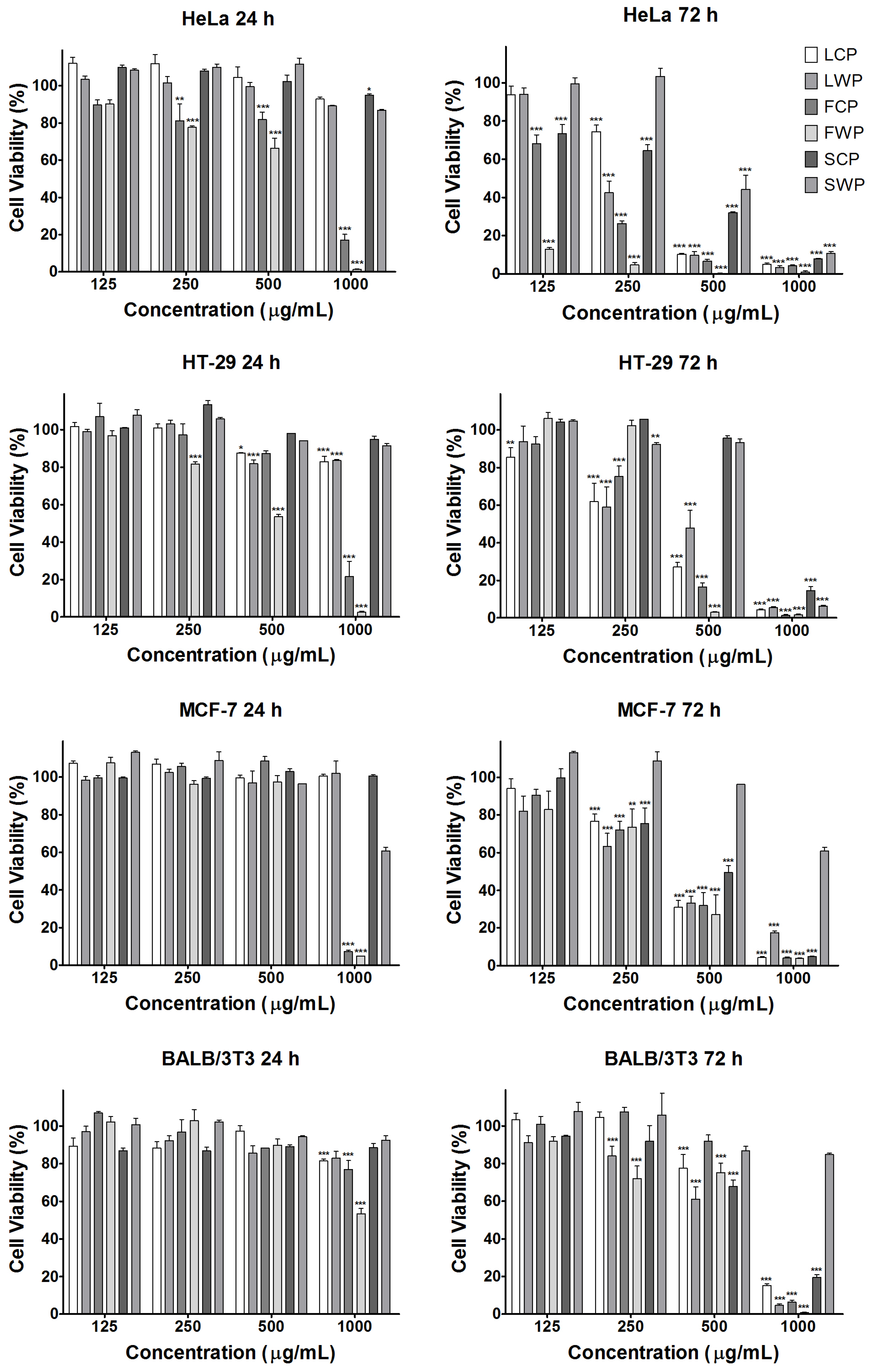 4.2.6. Preparation of Freeze-Dried Extract for Anti-Tumor Activity Analysis