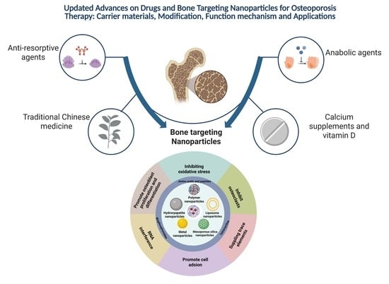 Updated Advances on Drugs and Bone-Targeting Nanoparticles for Osteoporosis Therapy: Carrier Materials, Modification, Function Mechanism, and Applications—A Systematic Review