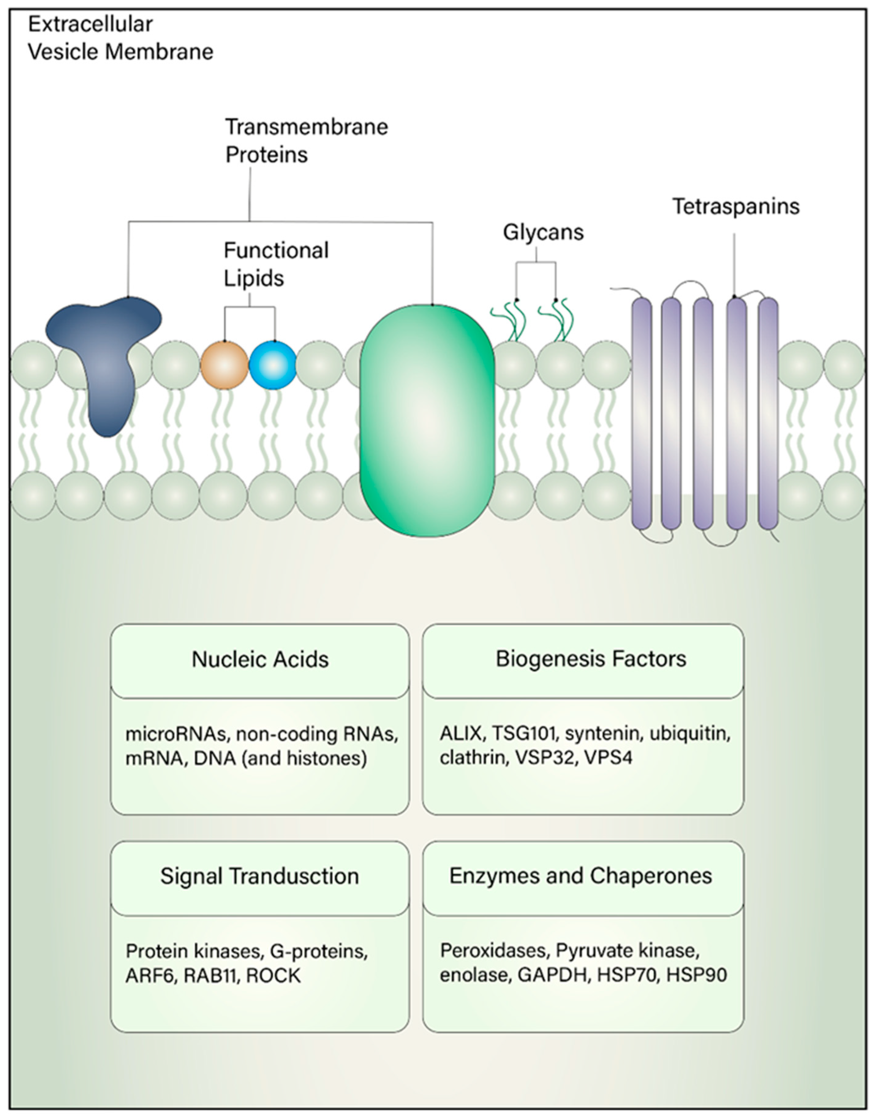- Van Niel, G.; d’Angelo, G.; Raposo, G. Shedding Light on the Cell Biology of Extracellular Vesicles. Nat. Rev. Mol. Cell Biol. 2018, 19, 213–228. [Google Scholar] [CrossRef] [PubMed]