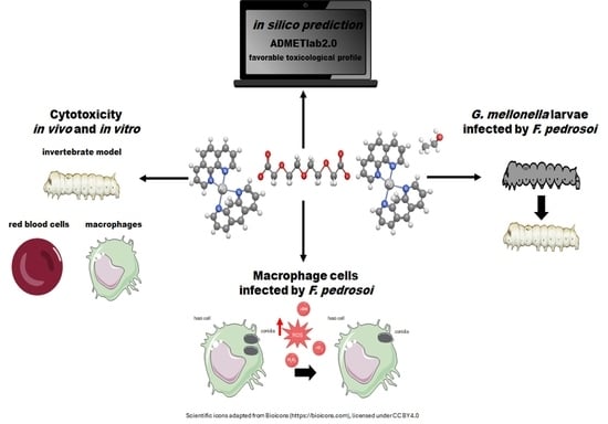 Sousa, I.S.; Giovanini, L.; Lorentino, C.M.A.; Barcellos, I.C.; McCann, M.; Devereux, M.; Santos, A.L.S.; Kneipp, L.F. Biological Activity of Silver(I)-1,10-Phenanthroline Complexes Against Fonsecaea pedrosoi: In Silico Predictions, In Vitro Macrophage Interactions and In Vivo Efficacy in Galleria mellonella. Pharmaceuticals 2025, 18, 1819. https://doi.org/10.3390/ph18121819