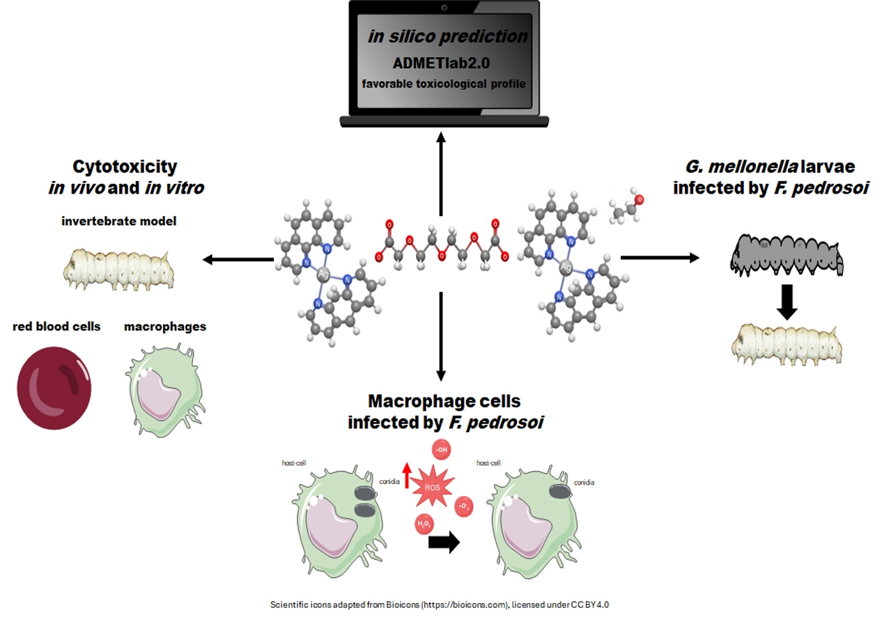 Sousa IS, Giovanini L, Lorentino CMA, Barcellos IC, McCann M, Devereux M, Santos ALS, Kneipp LF. Biological Activity of Silver(I)-1,10-Phenanthroline Complexes Against Fonsecaea pedrosoi: In Silico Predictions, In Vitro Macrophage Interactions and In Vivo Efficacy in Galleria mellonella. Pharmaceuticals. 2025; 18(12):1819. https://doi.org/10.3390/ph18121819