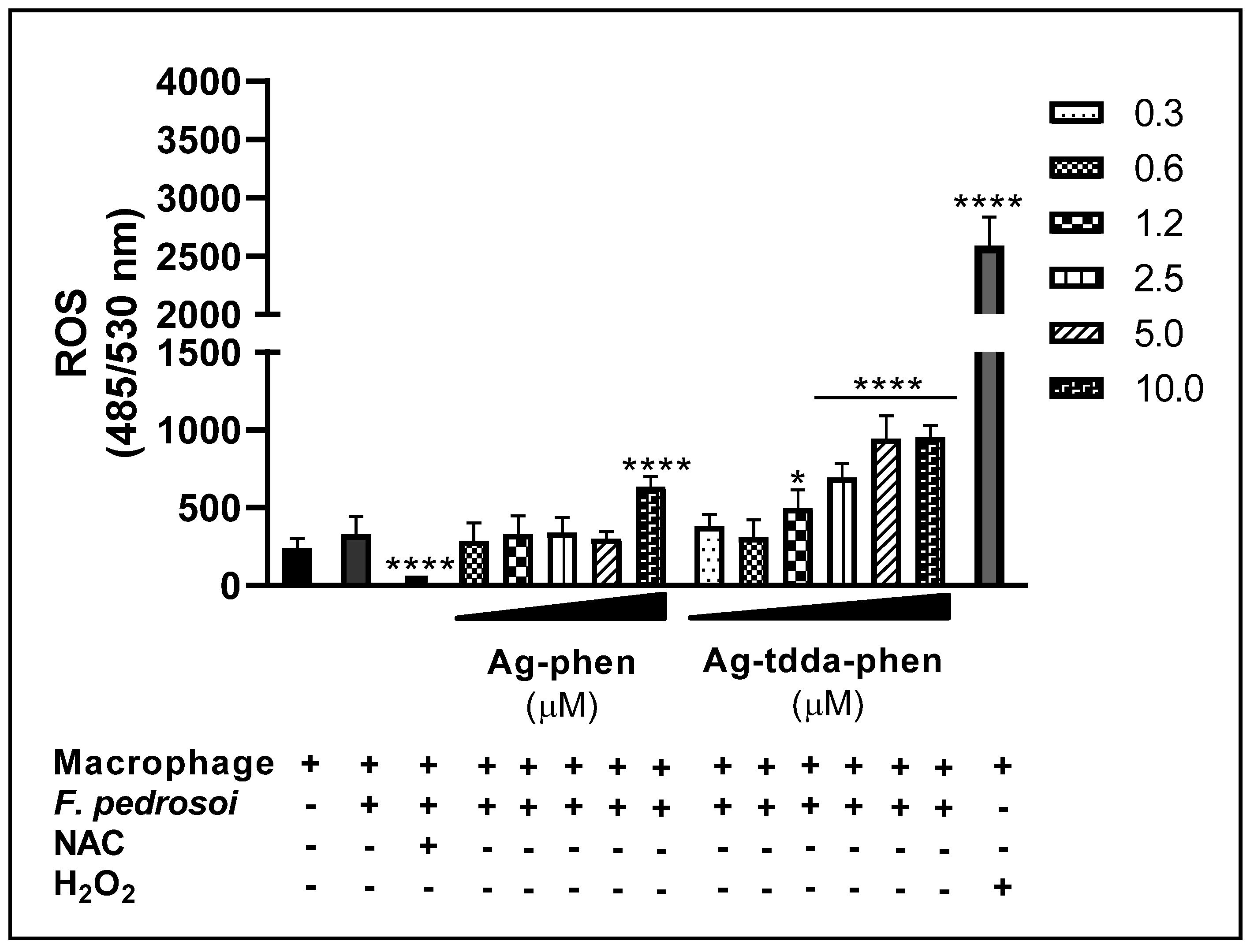 2.3. Effect of Compounds on Macrophages Infected with F. pedrosoi