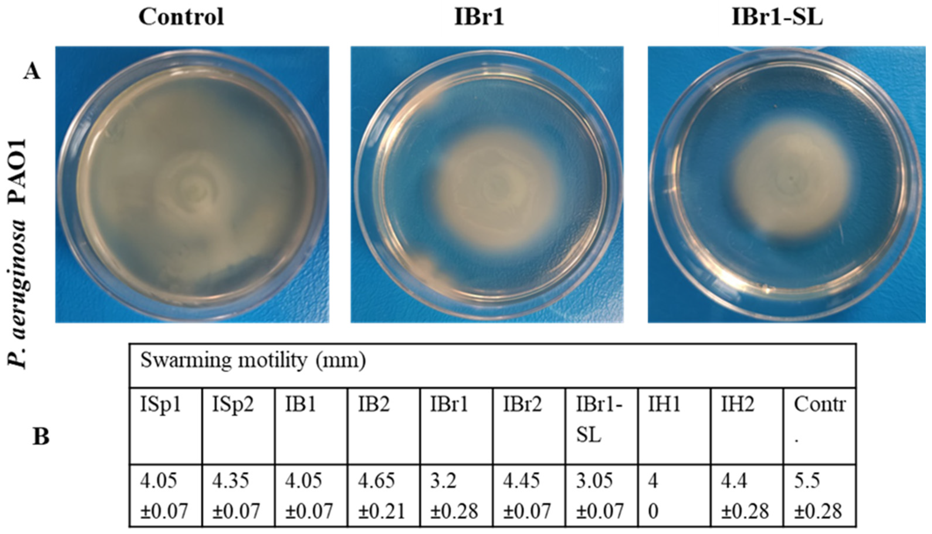 3.10. Swarming Motility Assay