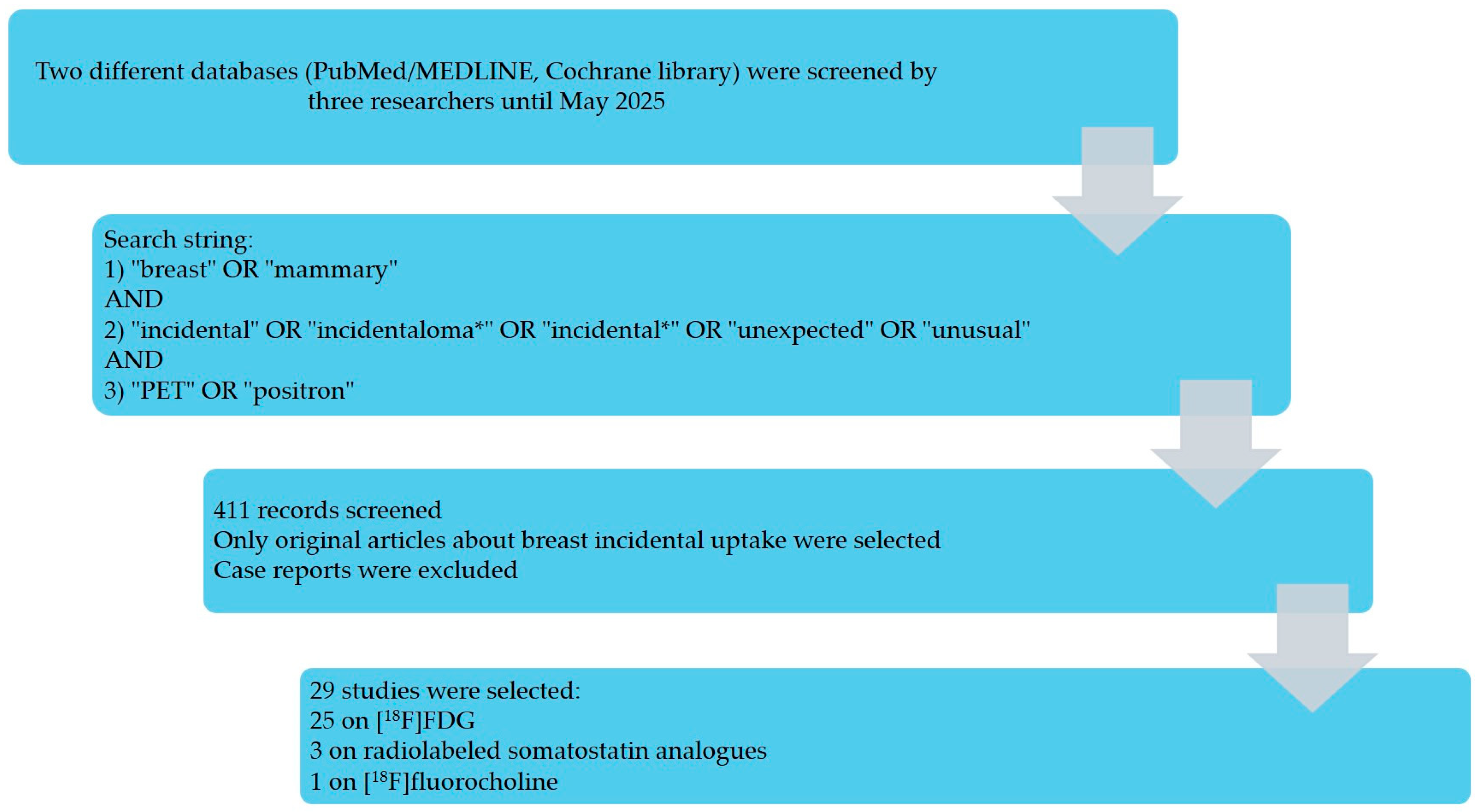 - Menon, P.; Bourke, A. Breast incidentalomas on 18-Fluorodeoxyglucose positron emission tomography-computed tomography performed for a non-mammary cause: Significance and outcomes. J. Med. Imaging Radiat. Oncol. 2023, 67, 357–364. [Google Scholar] [CrossRef]