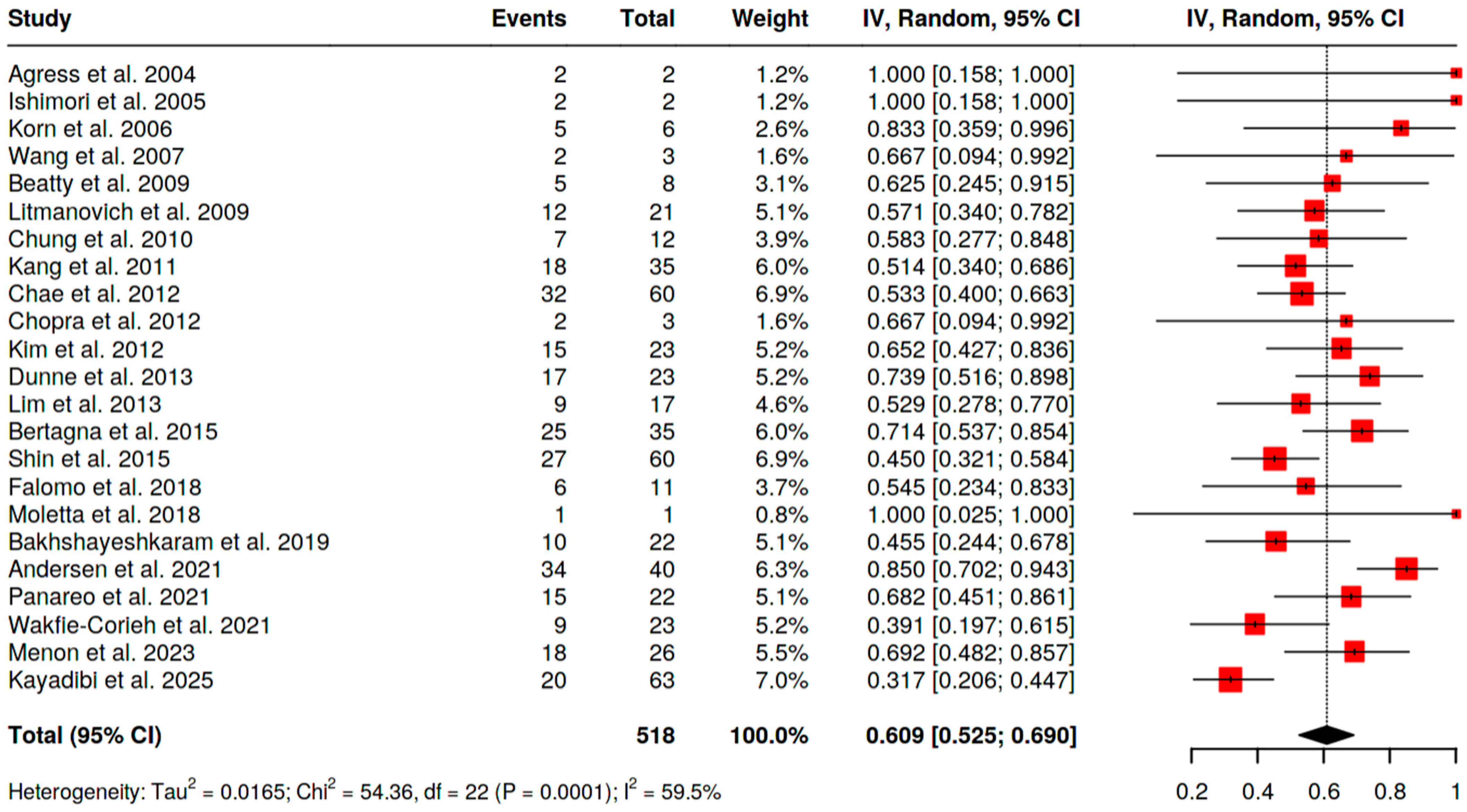 | Litmanovich et al. [15] | 2009 | USA/R | NR | NR | NC | 4038 | 33 | 0.8% | 21 | 12 | 57.1% | 36.4% | |