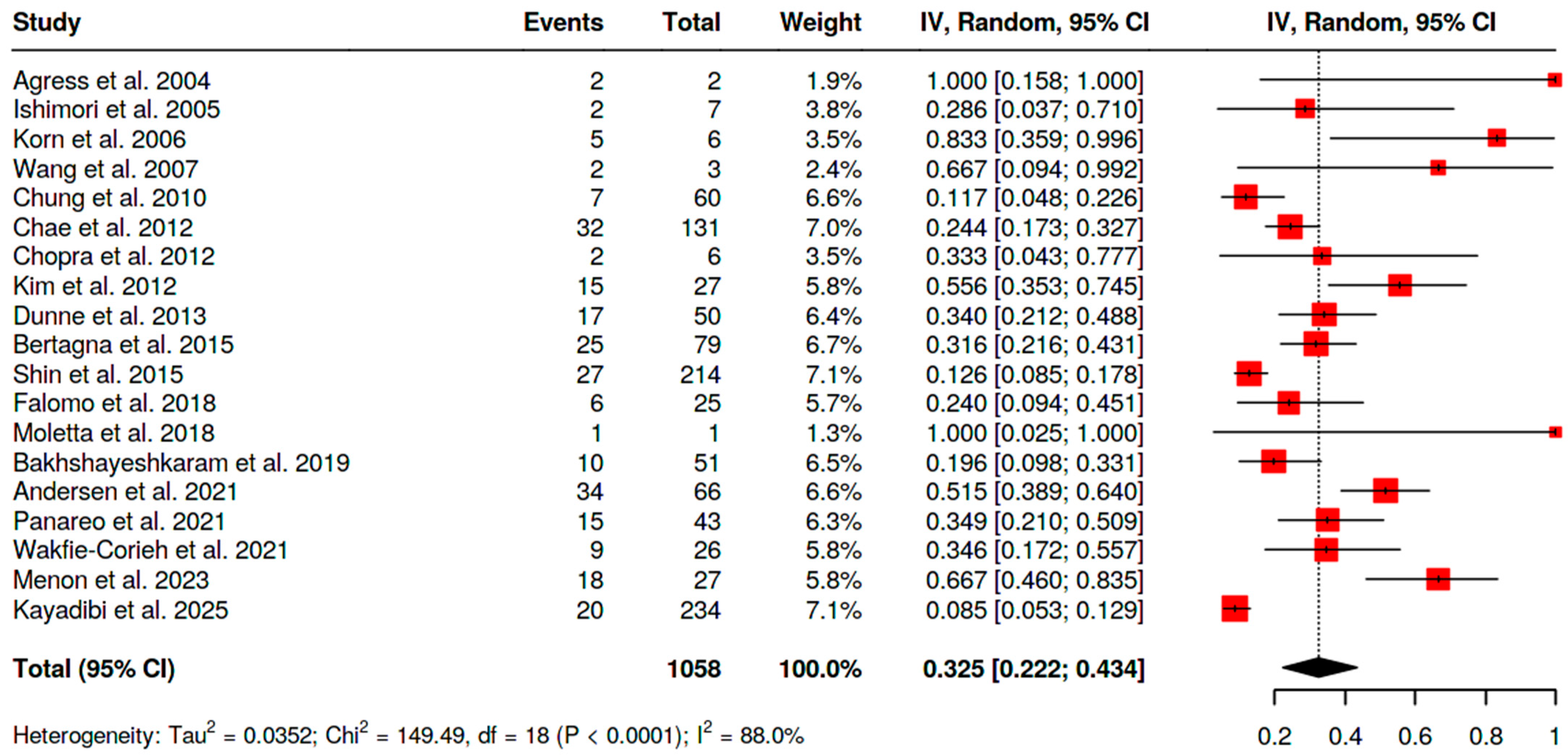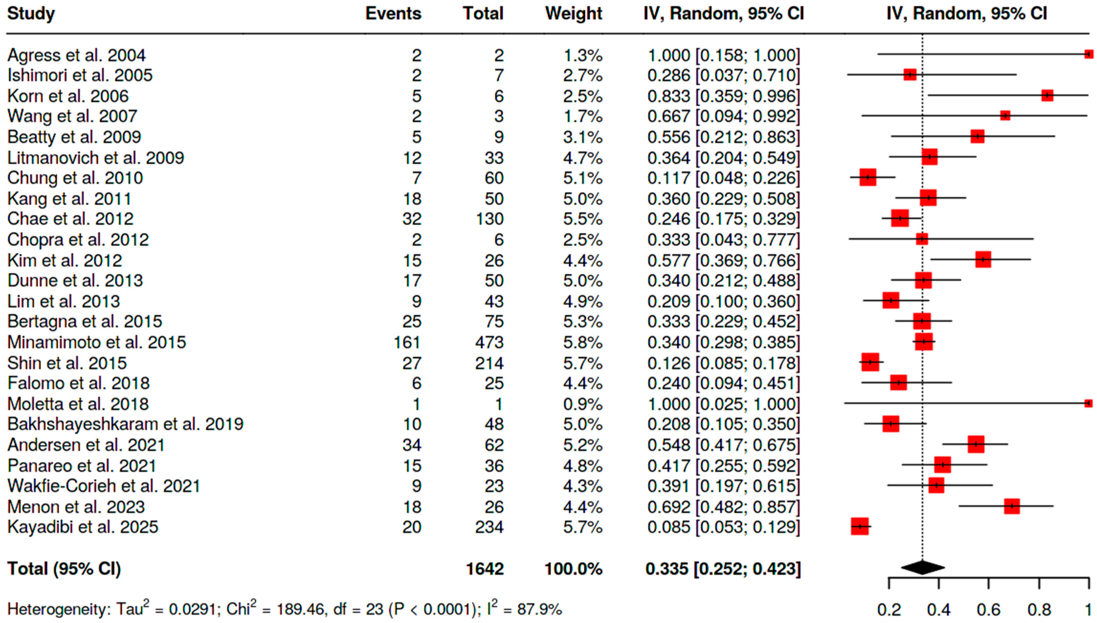 - For [18F]FDG PET/CT, 33.5% (95% CI 25.2–42.3; I2 = 87.9%) (Figure 5);