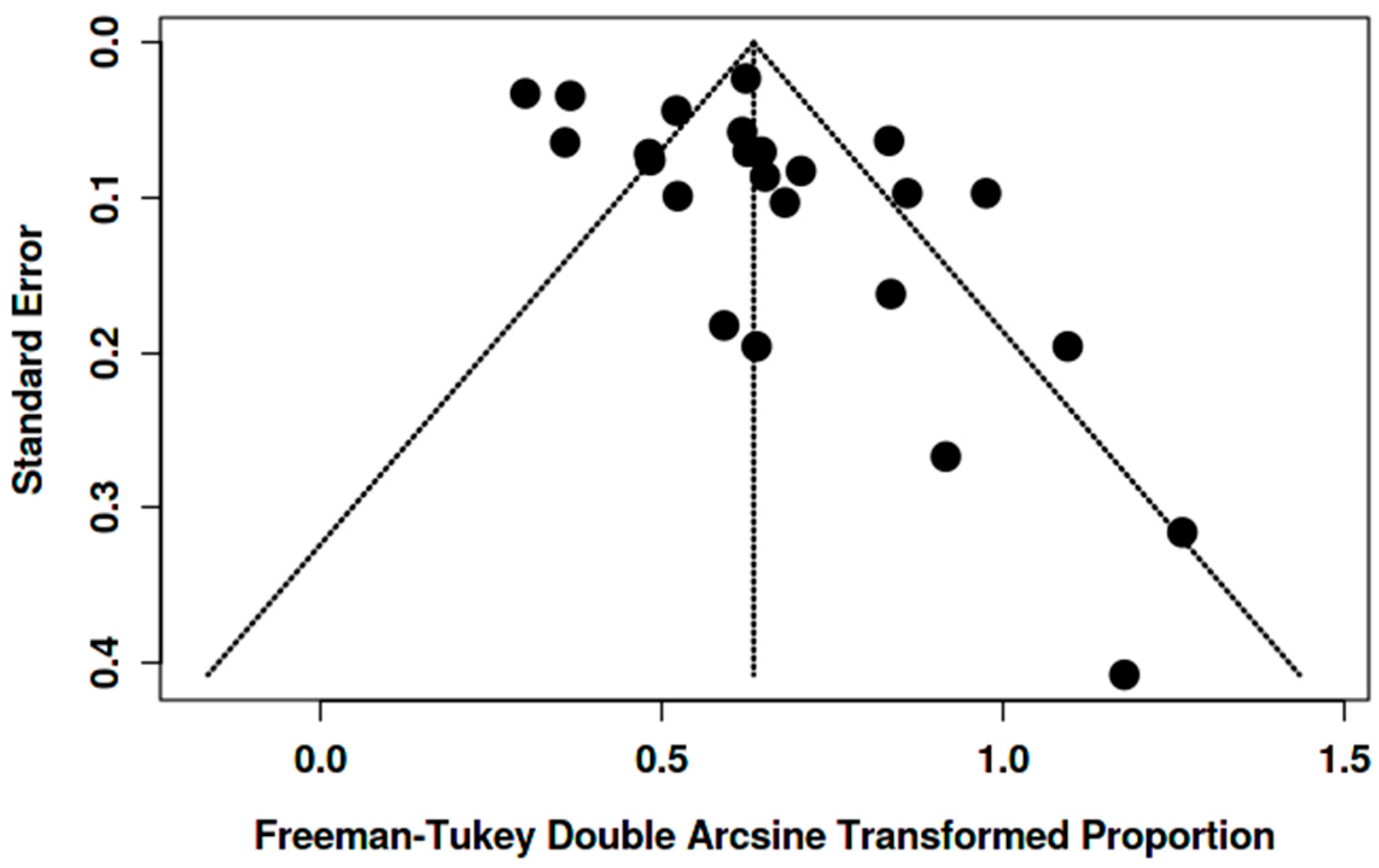 | Pooled values (95%CI) | 42.2% (34–50.5) | 7.1% (3.4–11.8) | 3.5% (1.7–5.8) | 11.1% (4.8–19) | 8.7% (6–11.6) | 14.8% (10.3–19.9) | 25.3% (17.3–34) | |||||||||