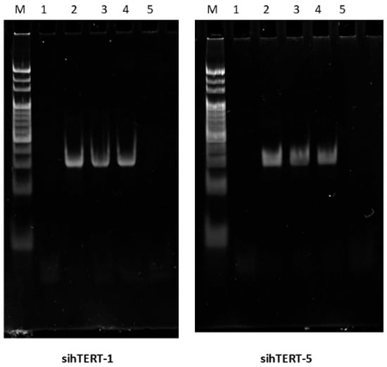 To validate that GT-multi-siRNA is processed into functional siRNAs, two siRNAs of GT-multi-siRNAs(sihTERT-1 and sihTERT-5) were detected in treated Hep3B cells at 12, 24, 36 and 48 h using stem-loop RT-PCR. The results confirmed the presence of two expected hTERT-targeted siRNAs, consistent with Dicer-mediated cleavage (Figure 3). Moreover, both siRNAs remained elevated for at least 36 h post-treatment, indicating sustained retention and activity (Figure 4).