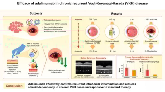 Lee J, Chung Y-R, Kim HR, Song JH. Efficacy of Tumor Necrosis Factor-α Inhibitor Adalimumab in Chronic Recurrent Vogt–Koyanagi–Harada Disease. Pharmaceuticals. 2025; 18(12):1848. https://doi.org/10.3390/ph18121848