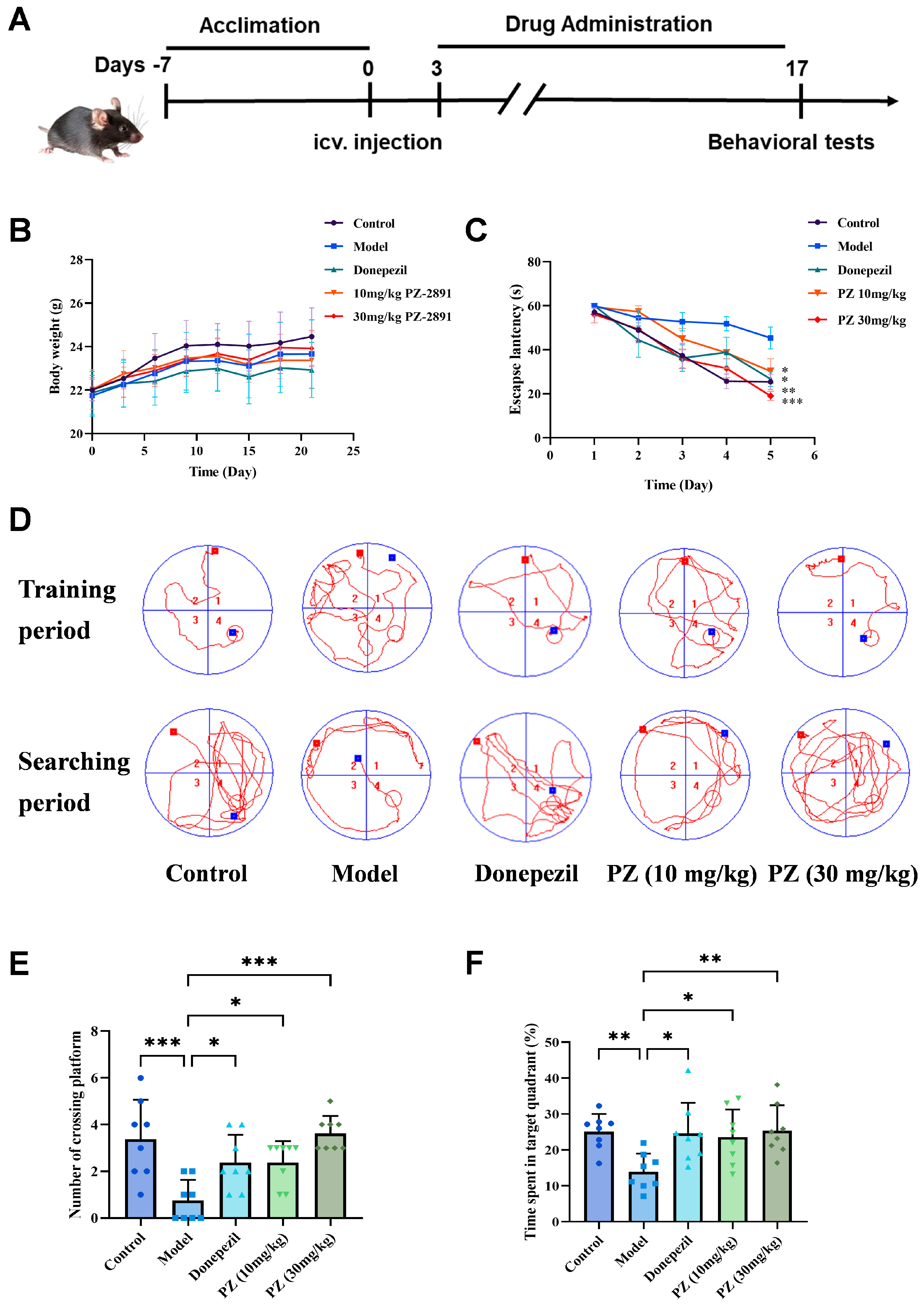 2.2. Behavioral Experiments of PZ-2891 In Vivo